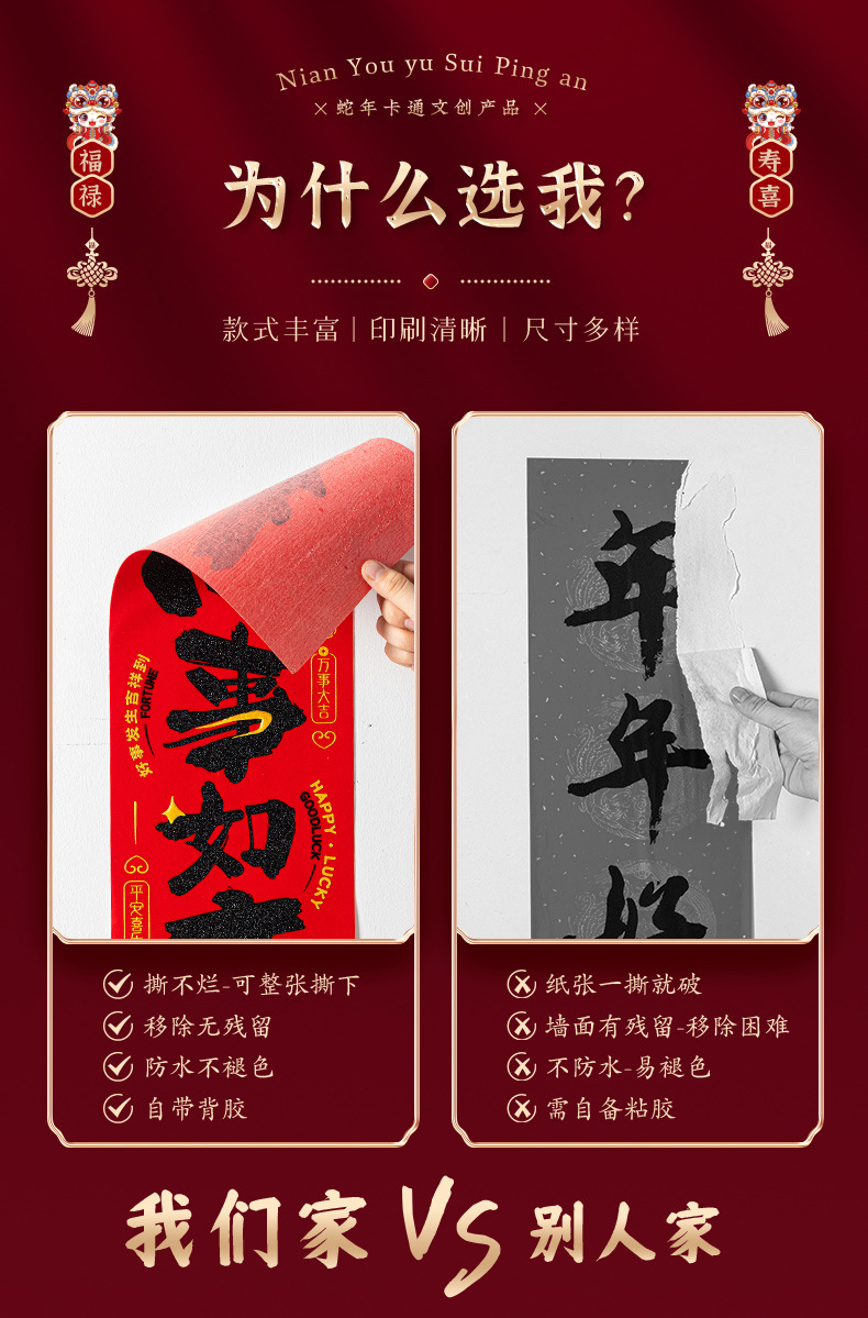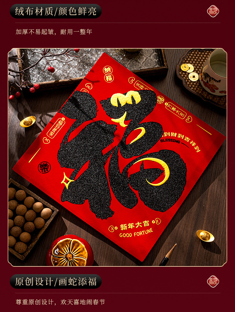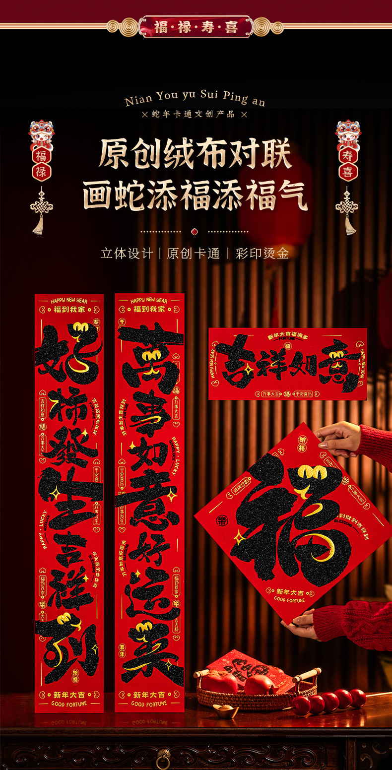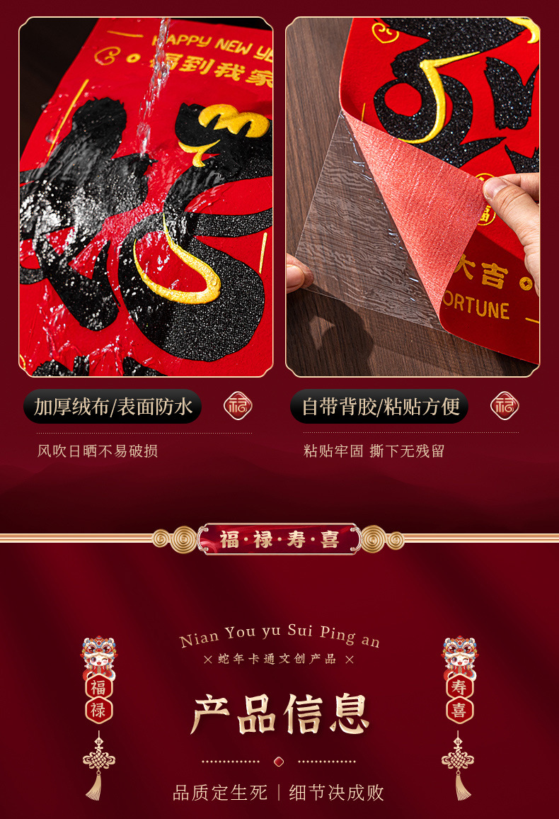新款蛇年书法对联2025春节过年福字家用防水年货门贴装饰布置用品