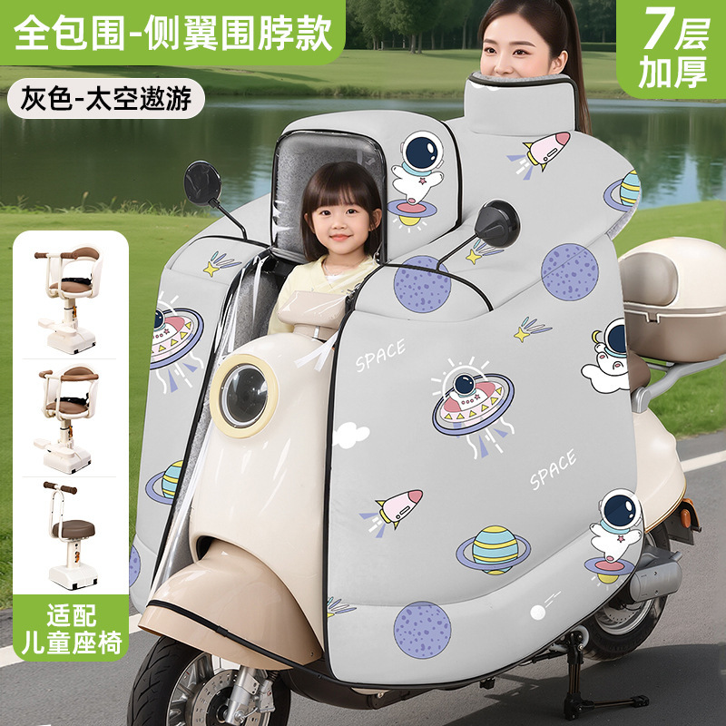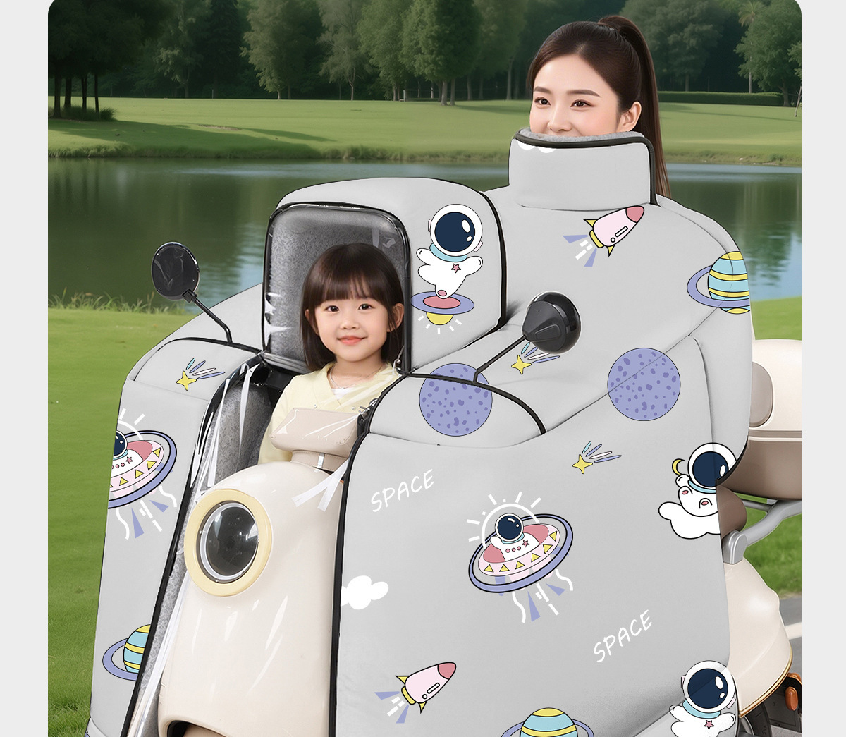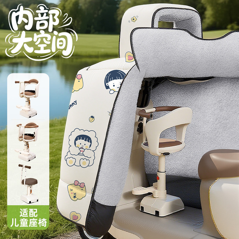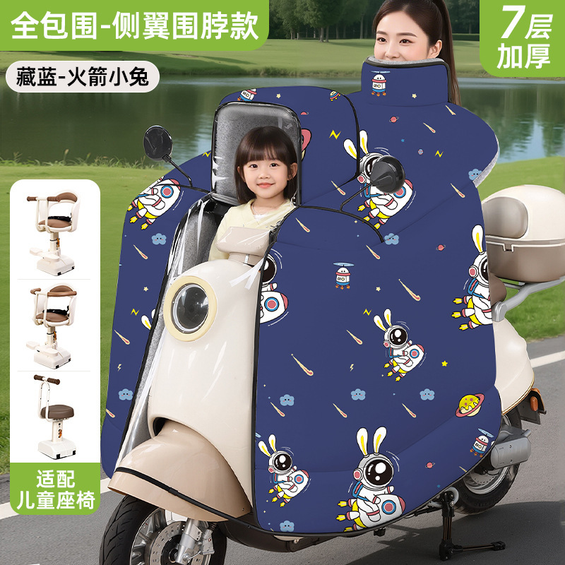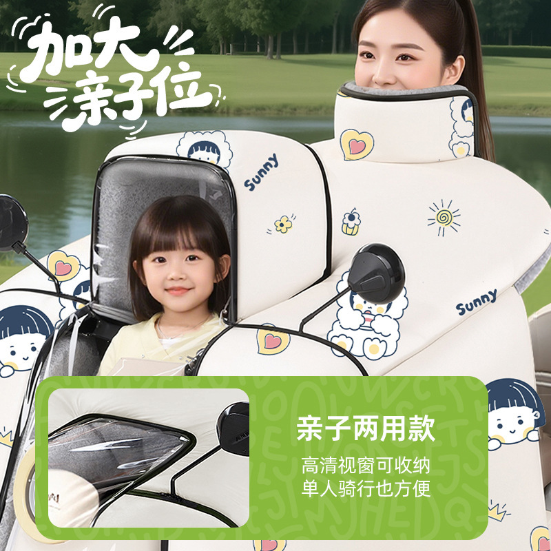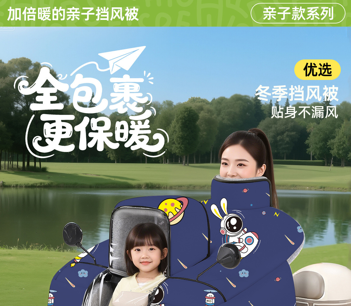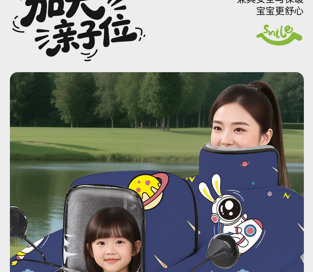 新款亲子款电动车挡风被冬季加绒加厚电瓶车挡风罩斗篷防风防水