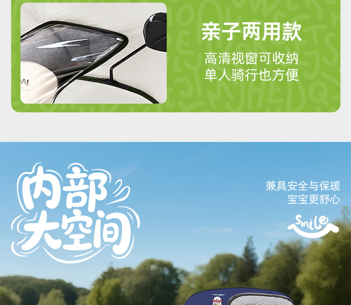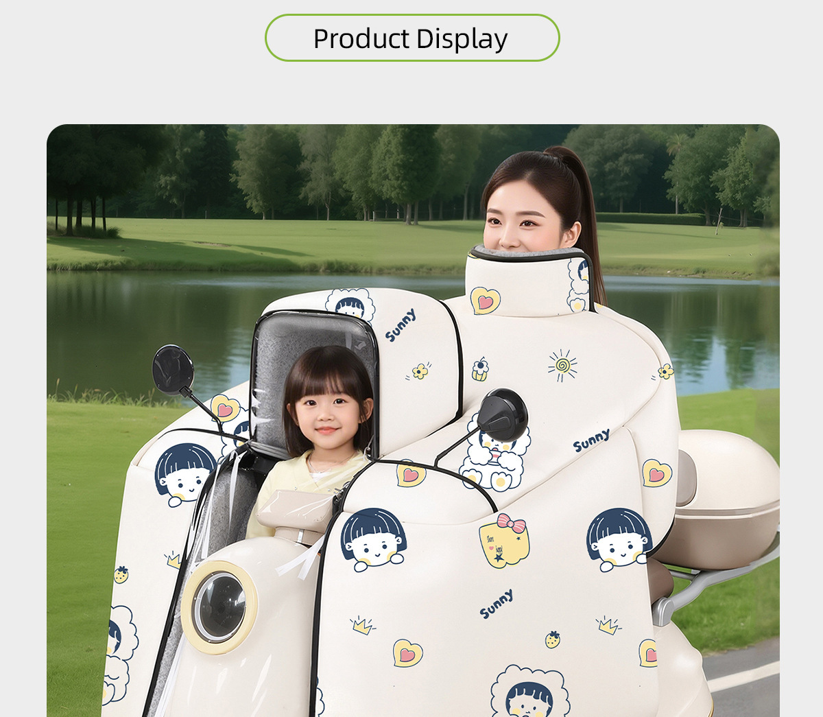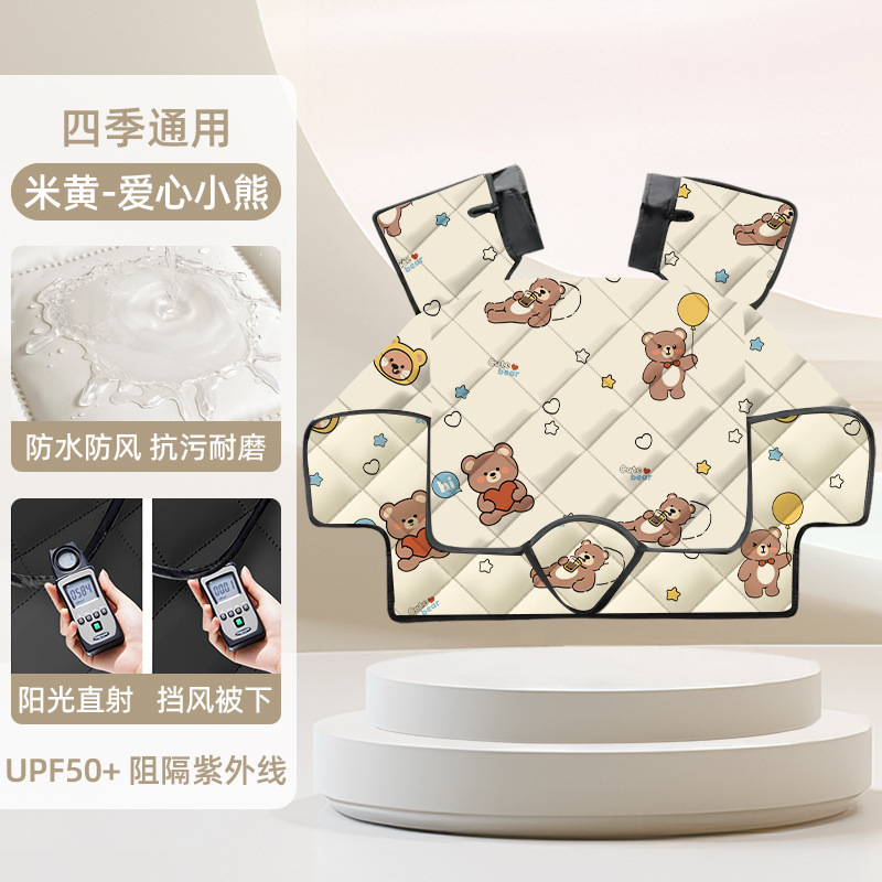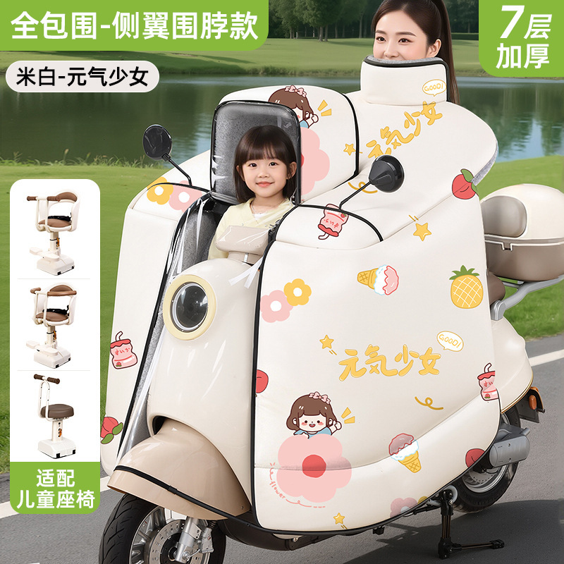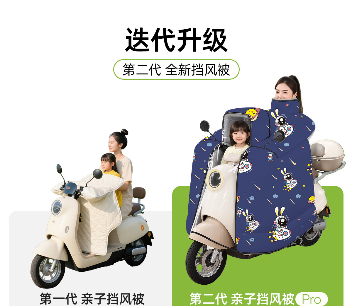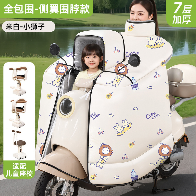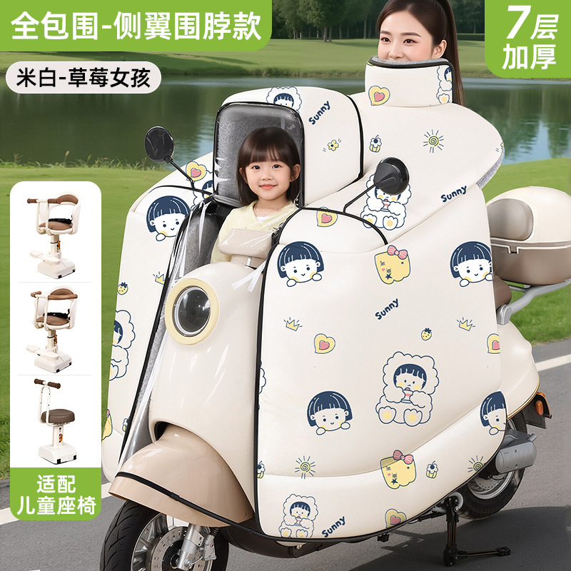 新款亲子款电动车挡风被冬季加绒加厚电瓶车挡风罩斗篷防风防水