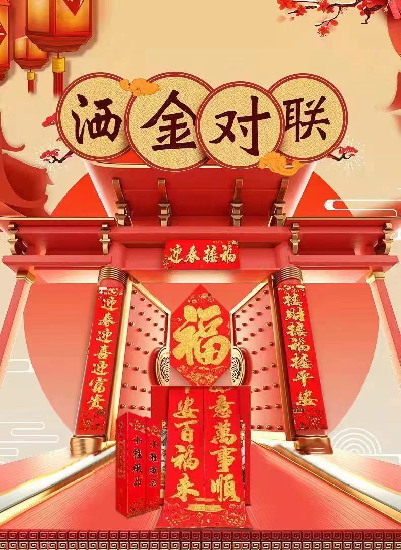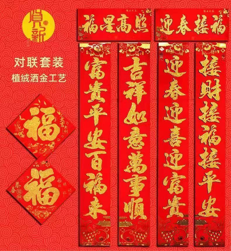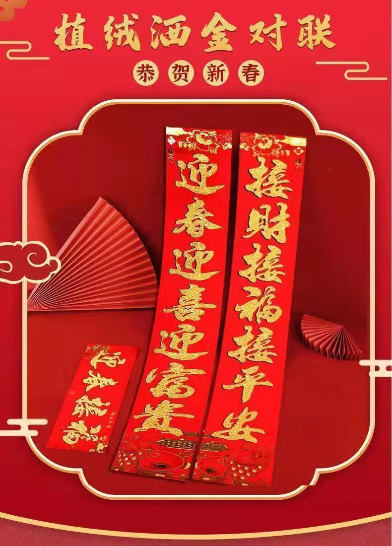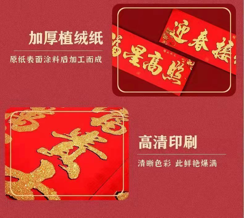 2026新款植绒对联春节马年植绒洒金春联小区农村大门家用对联春联