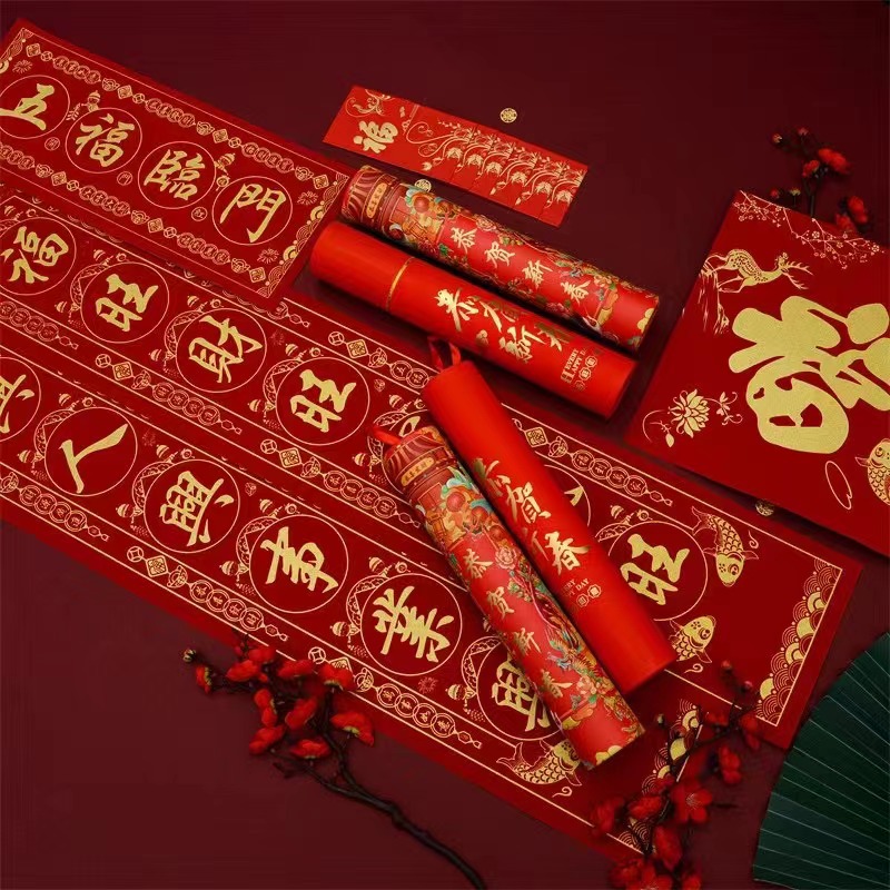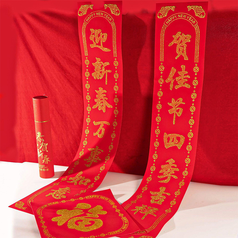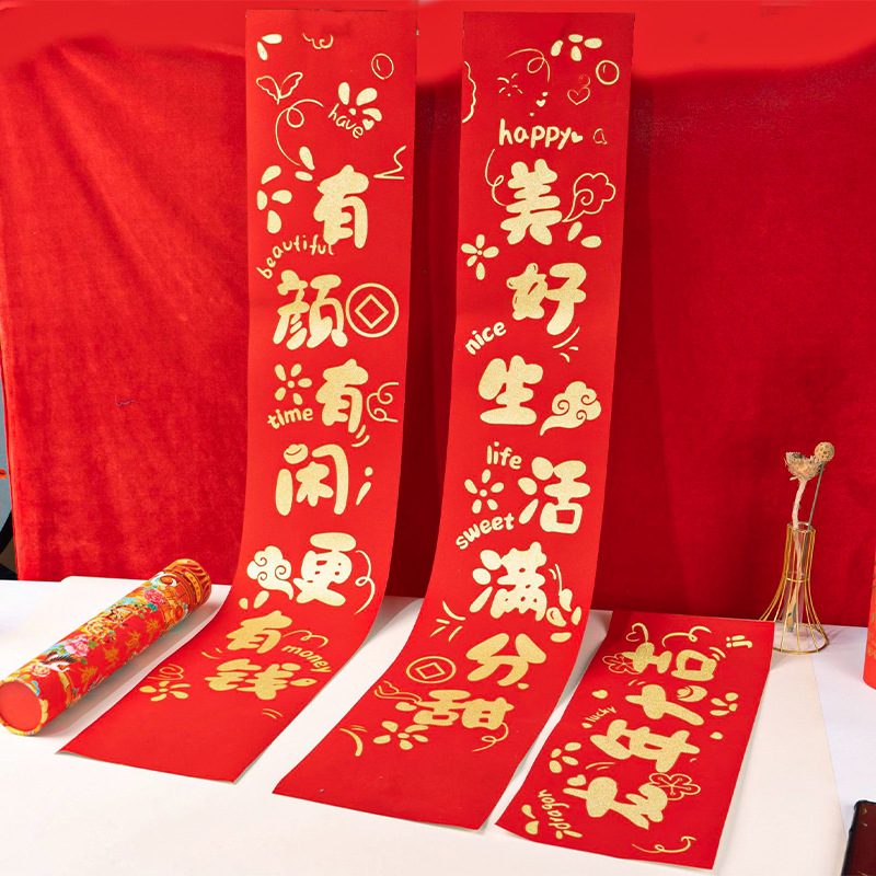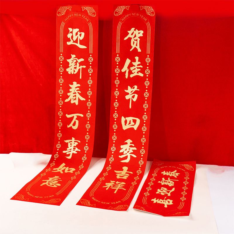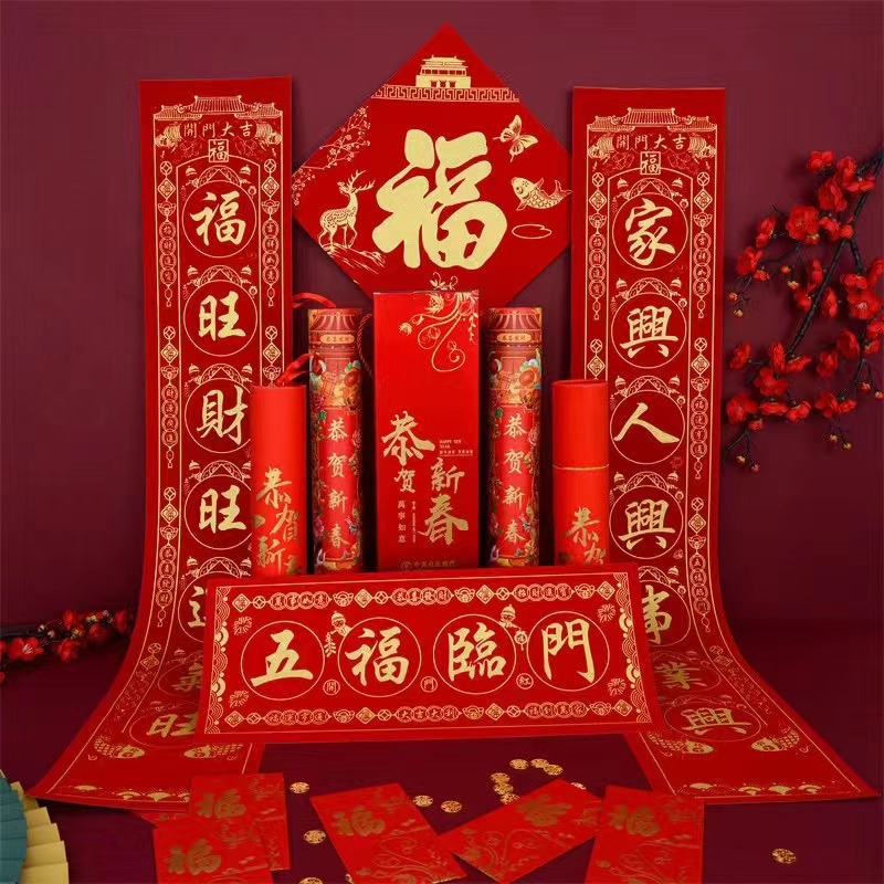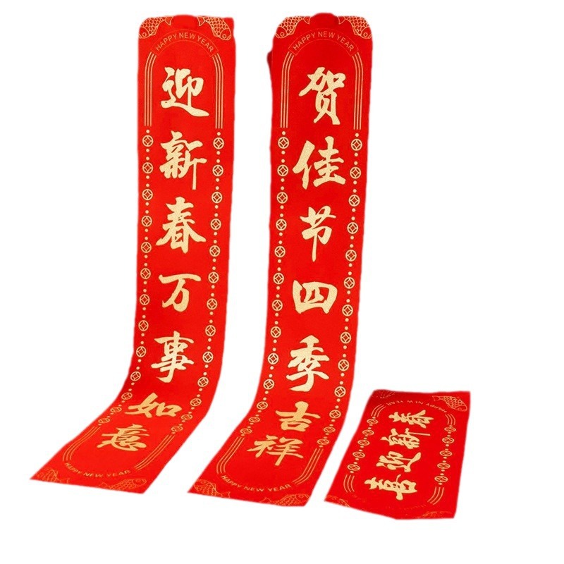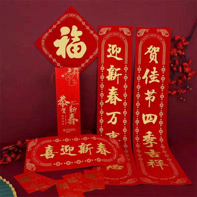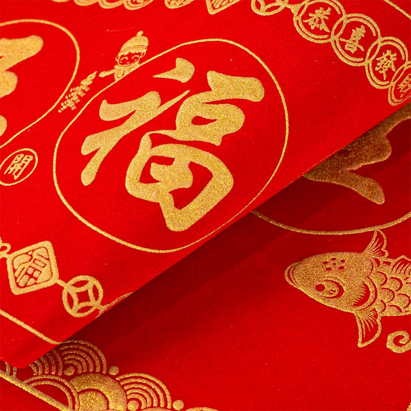 2026马年春节植绒对联春联对联礼包定制logo烫金洒金绒布福字贴