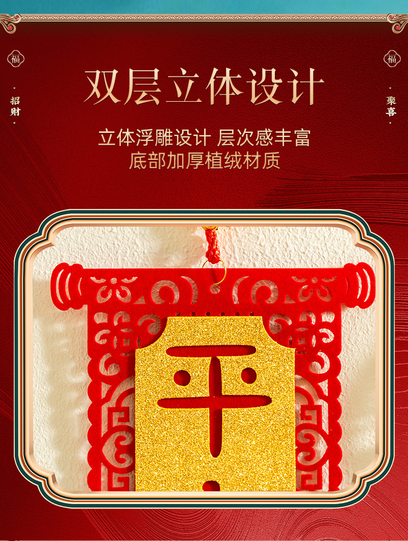 新年大吉新春绒布对联挂件四字小对入户门喜庆春联春节玄关装饰品