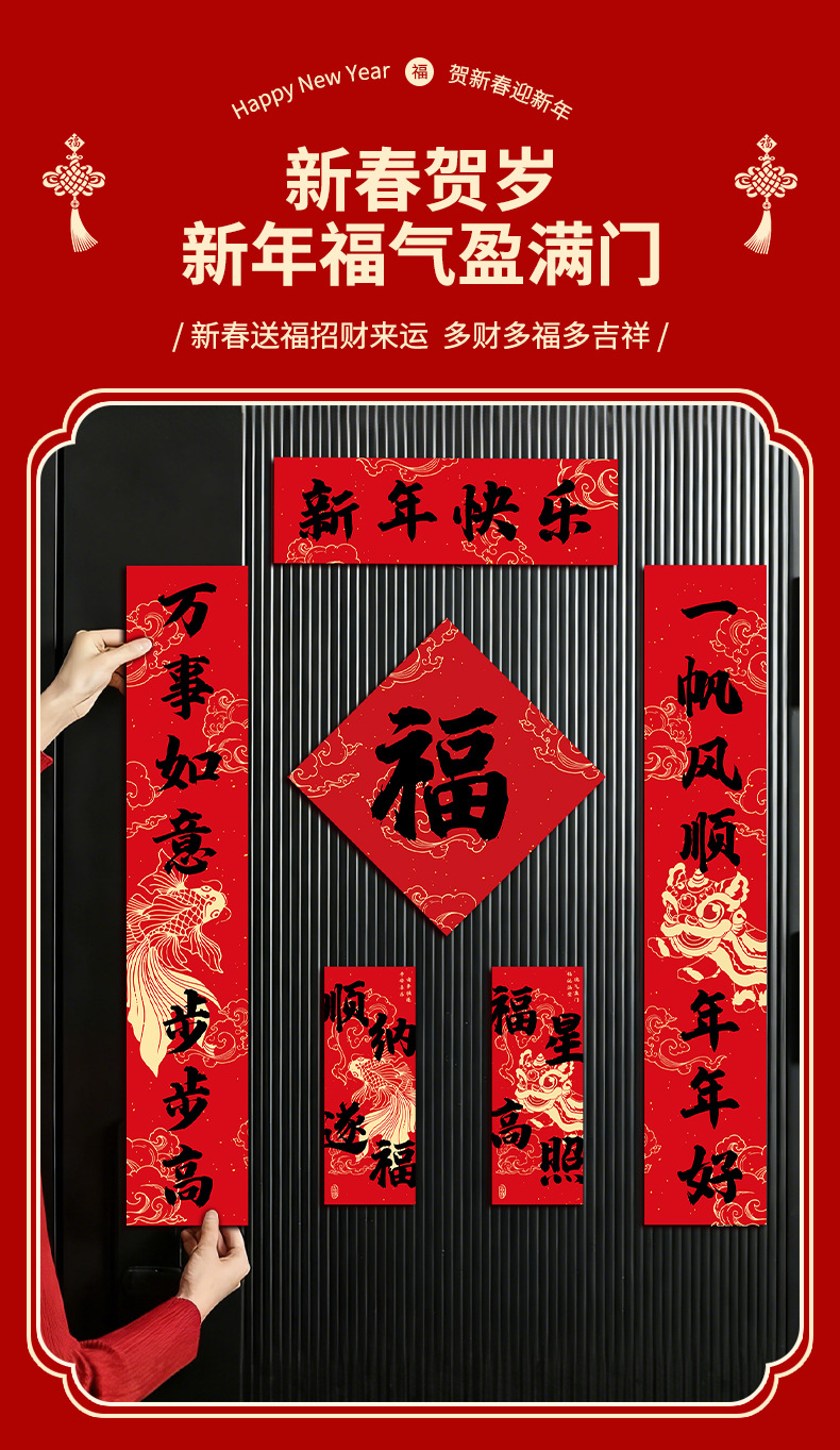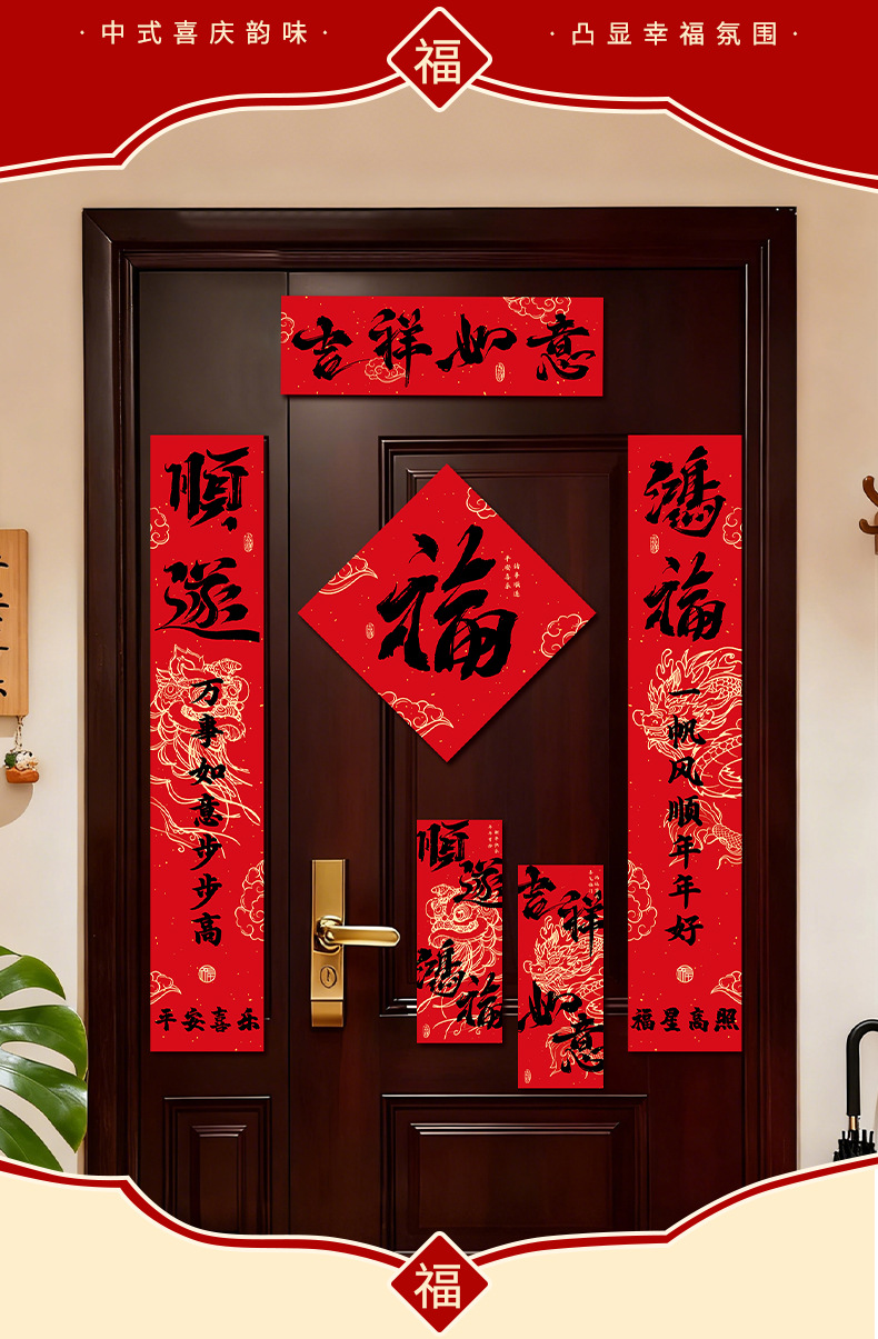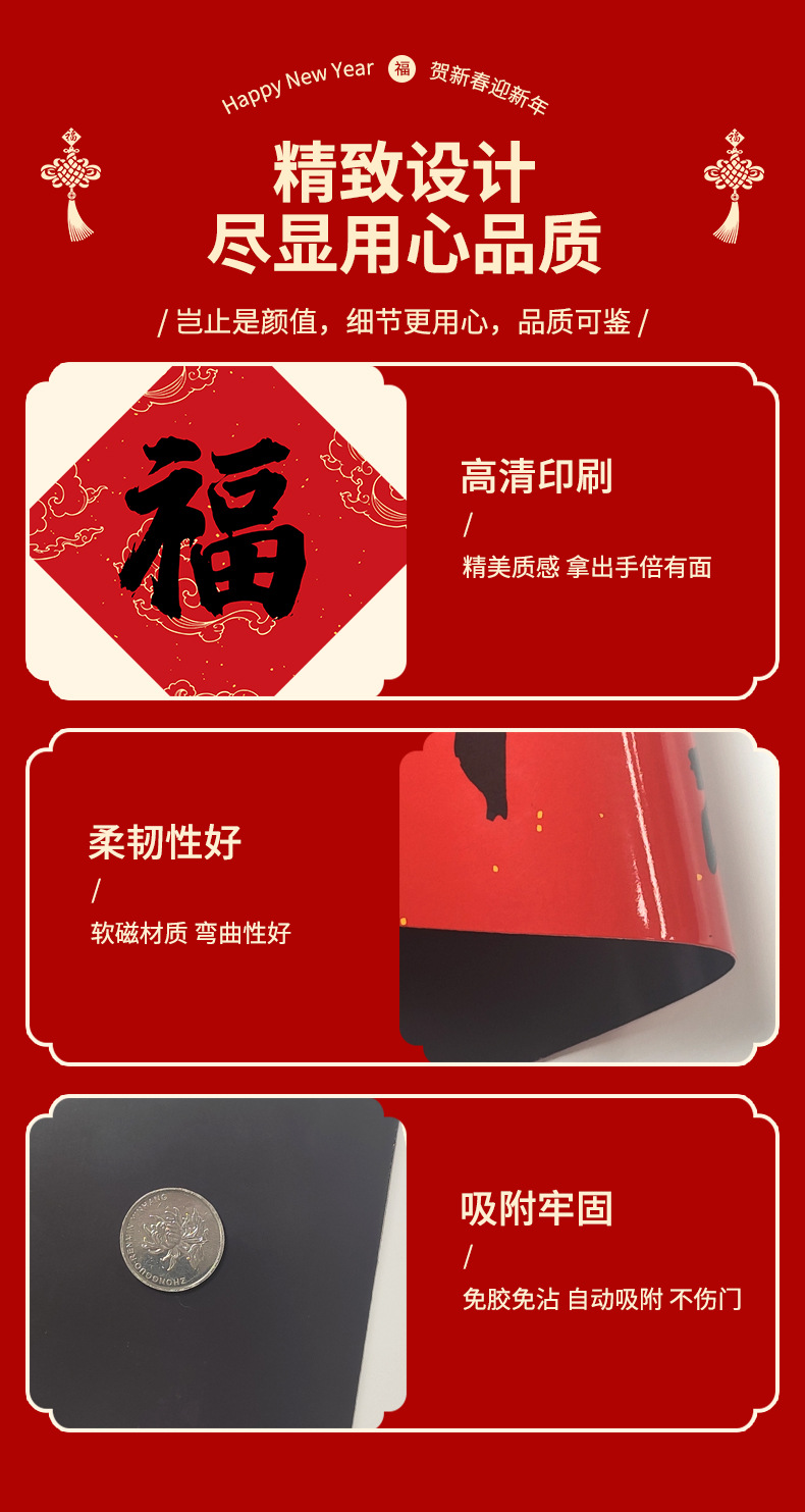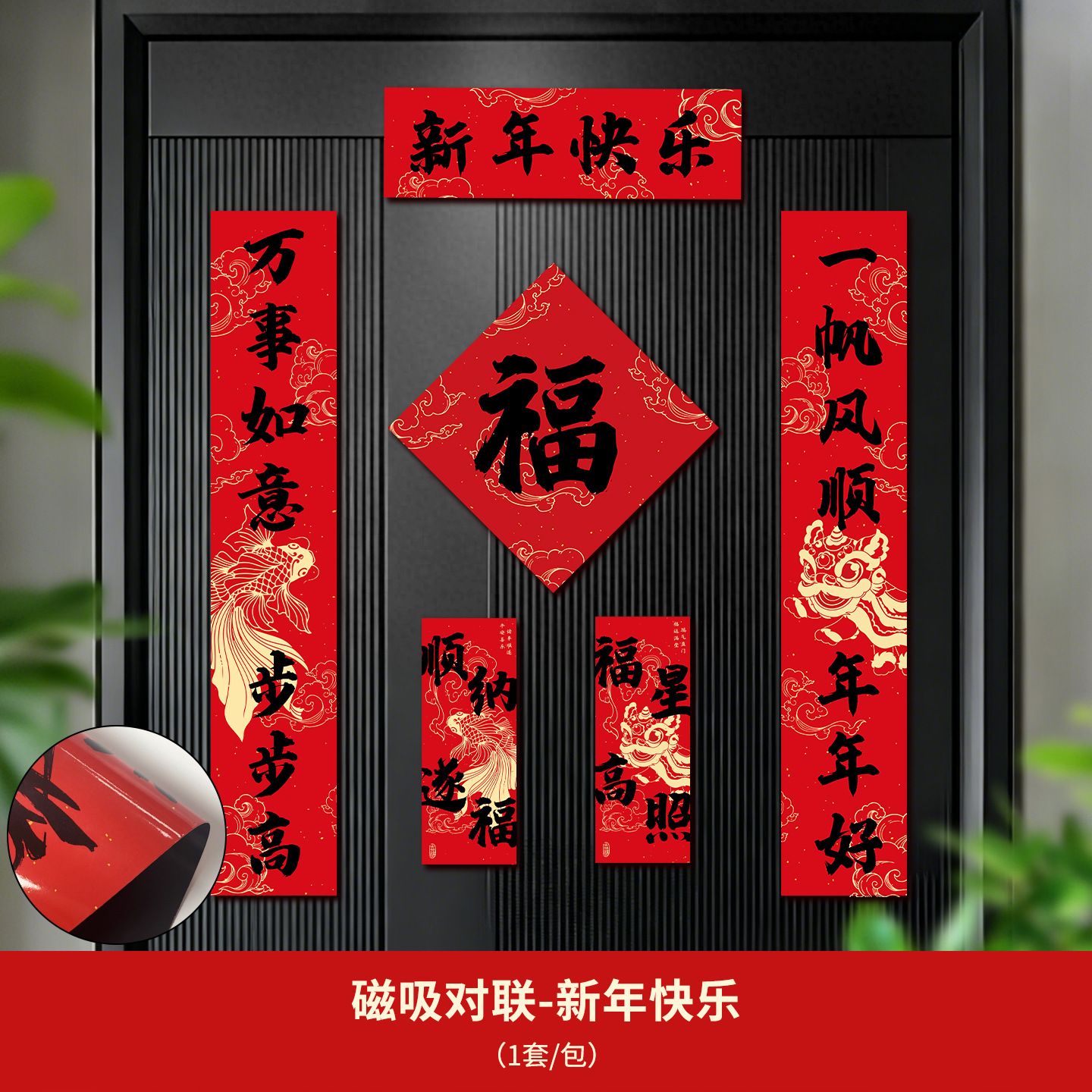 新款马年磁吸对联过年春节入户门创意春联套装新年福字门贴批发