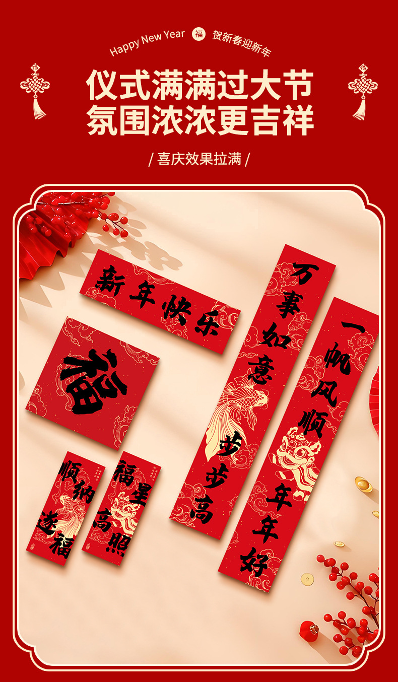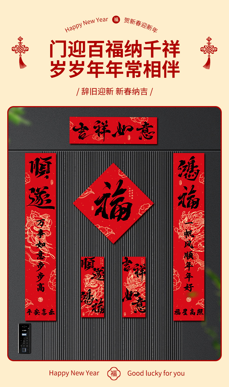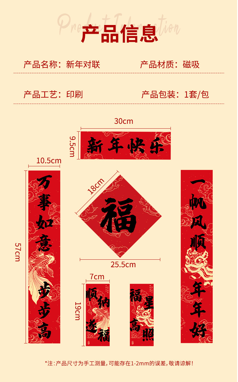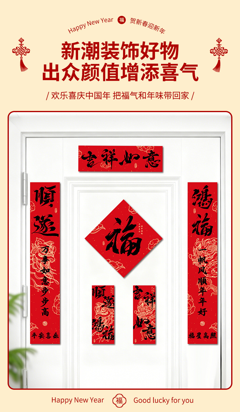 新款马年磁吸对联过年春节入户门创意春联套装新年福字门贴批发