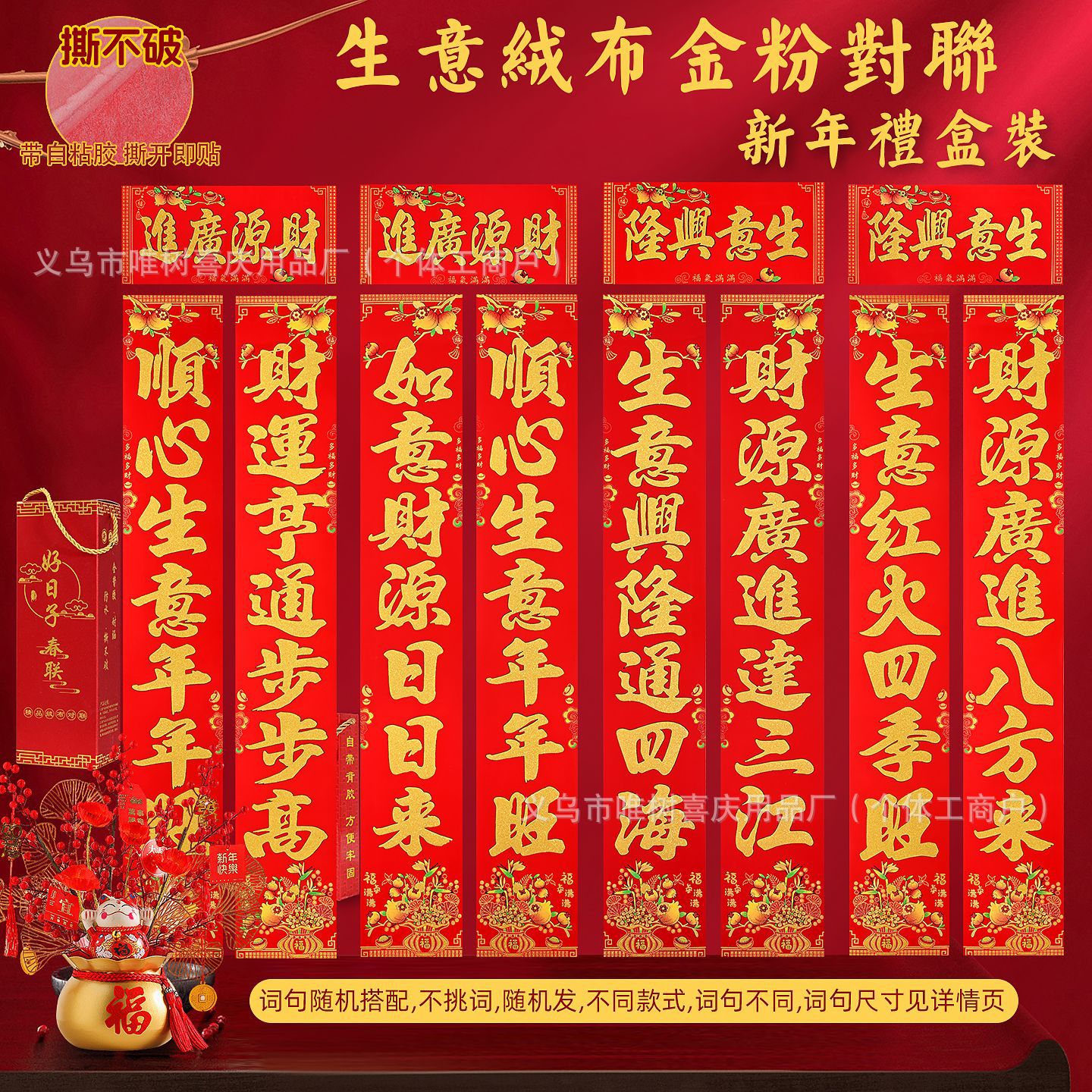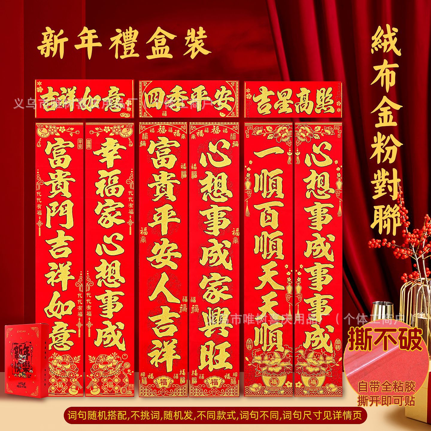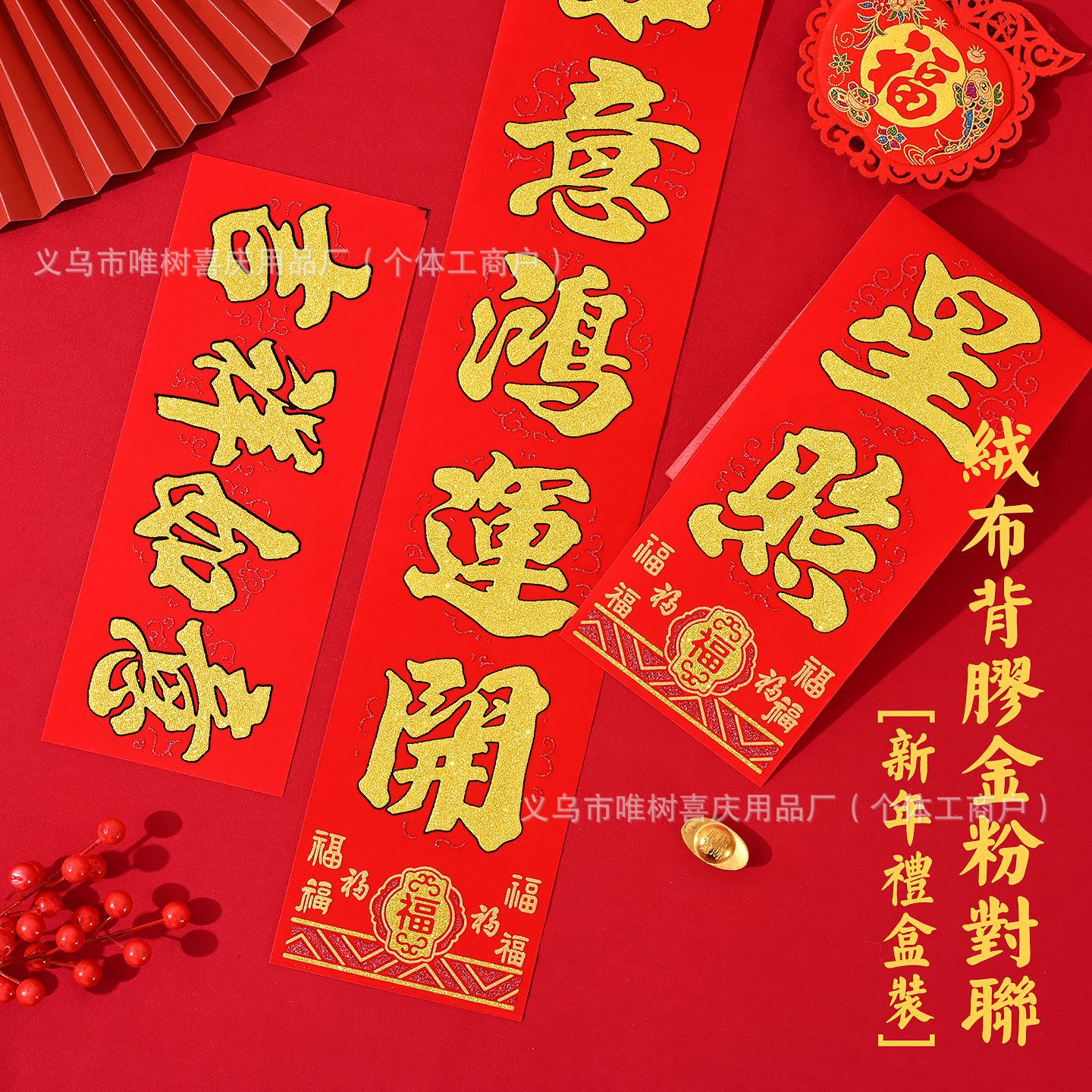 对联2026马年加厚金粉植绒布背胶自粘书法春联贴年货摆摊批货厂家