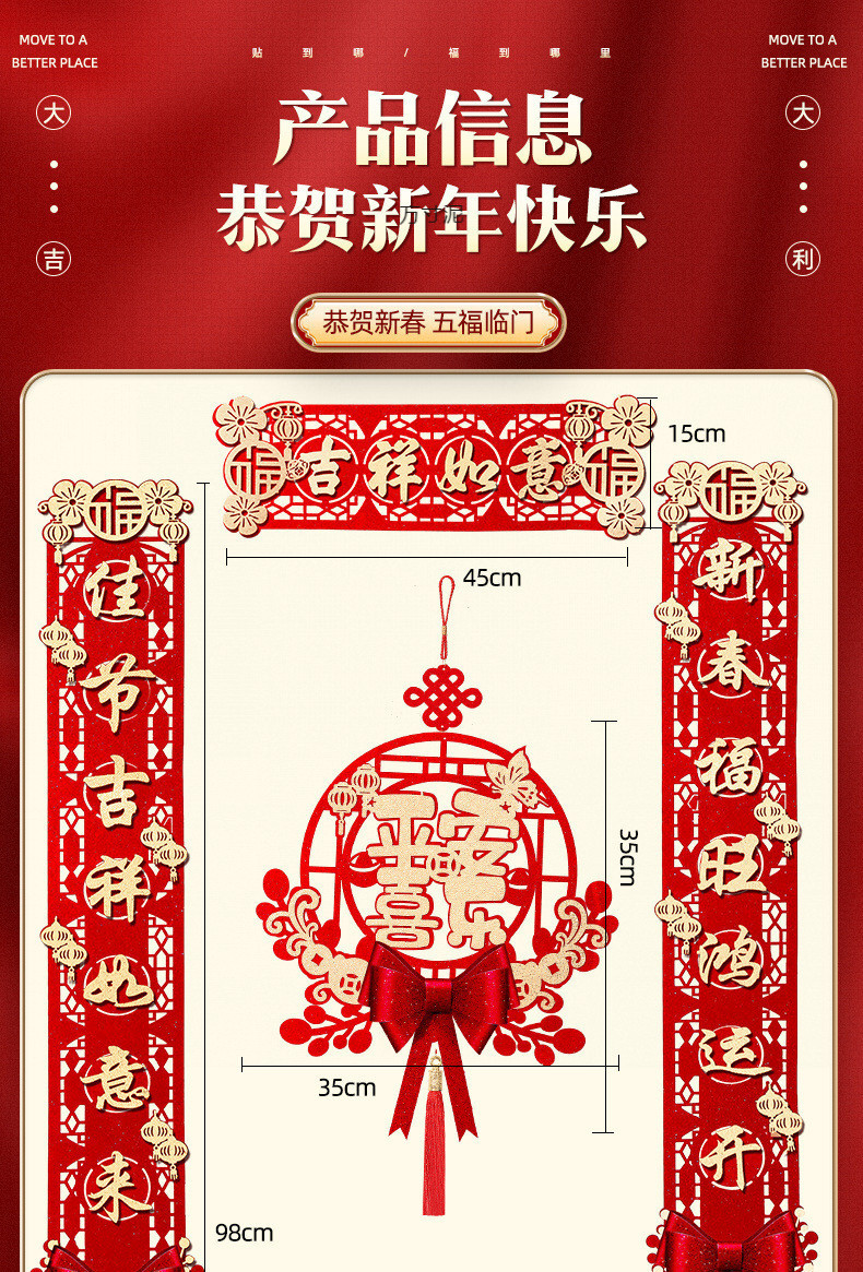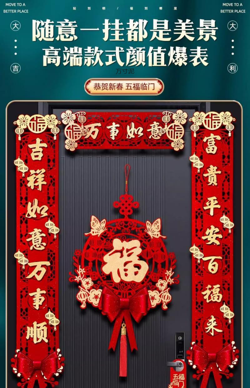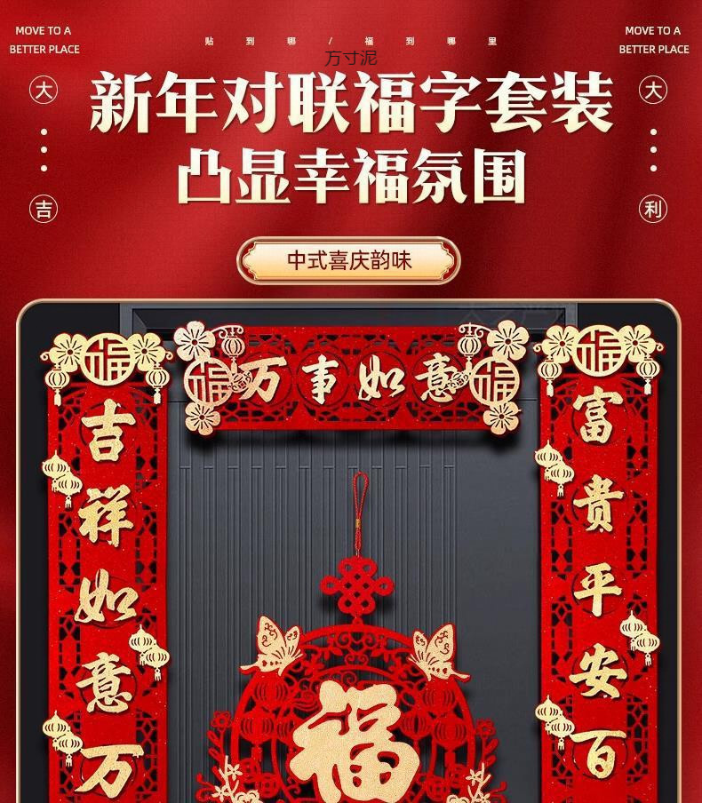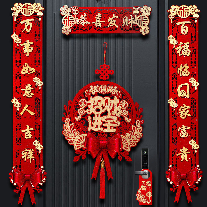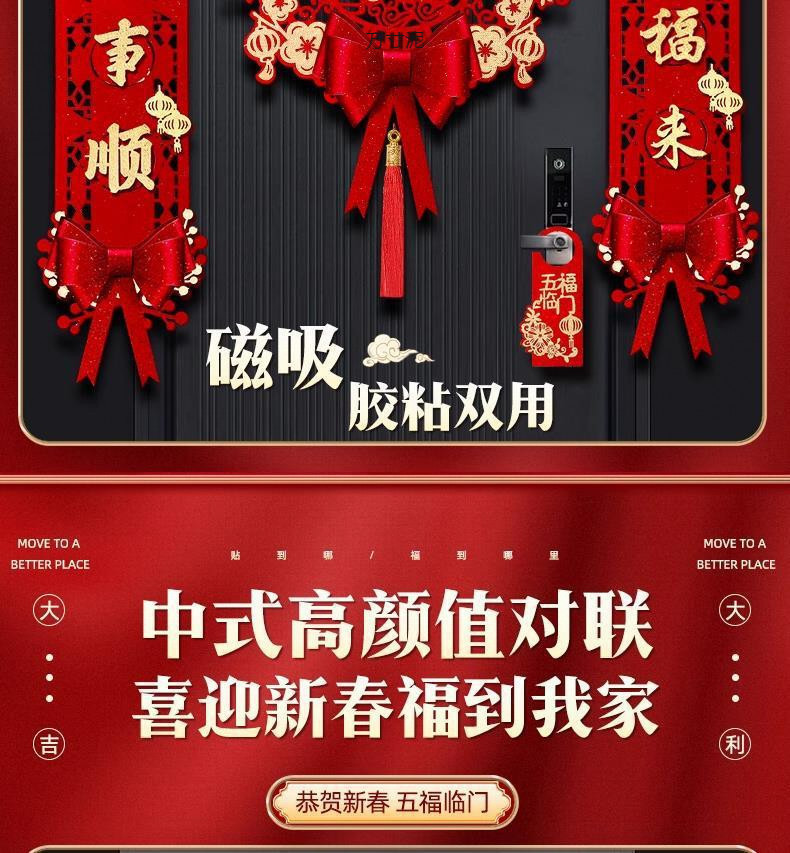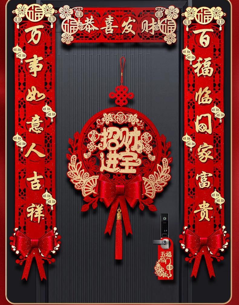 新年对联春联新款春节磁吸对联新年入户门植绒红对联过年装饰