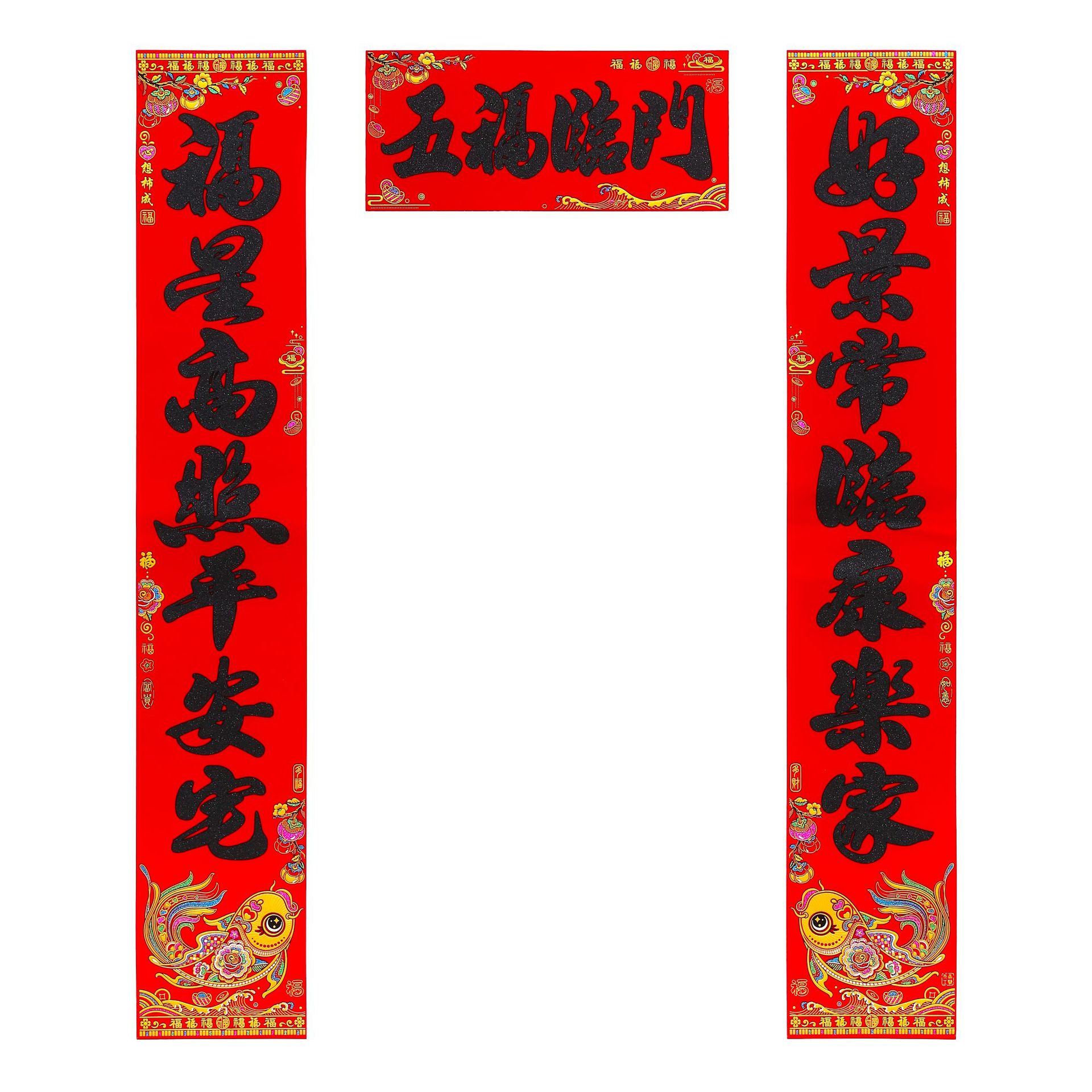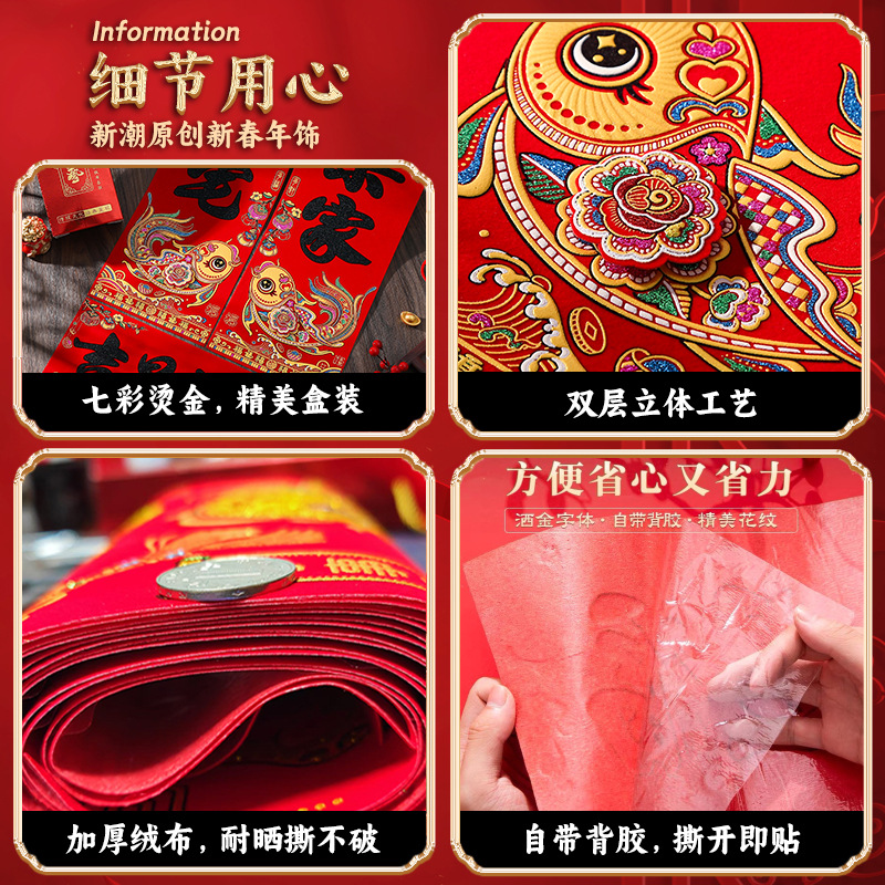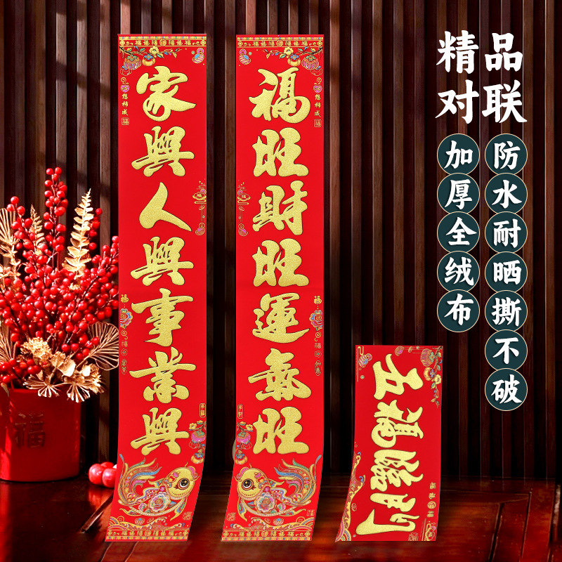 2026绒布对联黑字全背胶门联马年春节新年植绒春联批货厂家批发