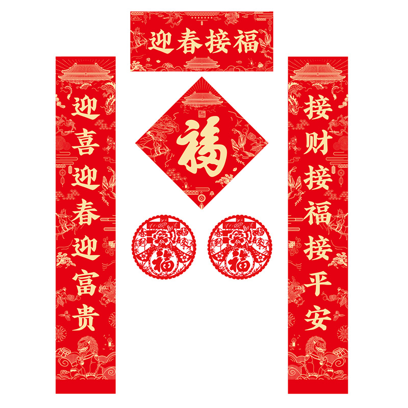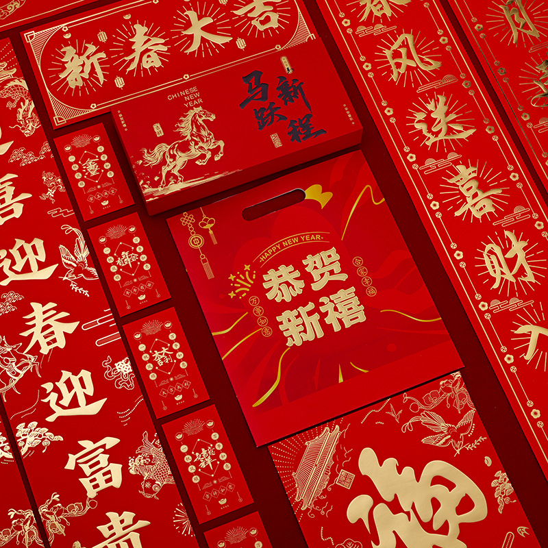 春节春联定做企业对联定制LOGO大礼包烫金特种纸春联定做福字加印