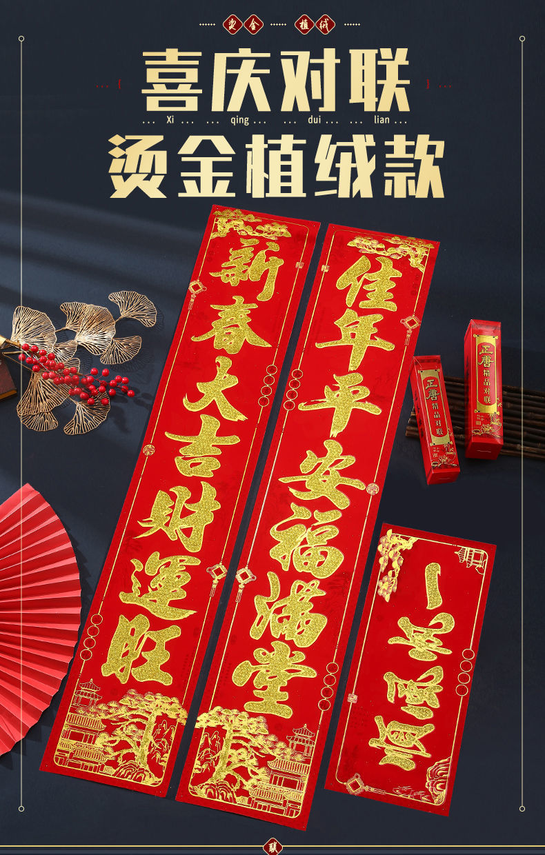 2026 horse year new flocking couplet wholesale spring festival household spring festival flannel couplet door sticker calligraphy new year couplet