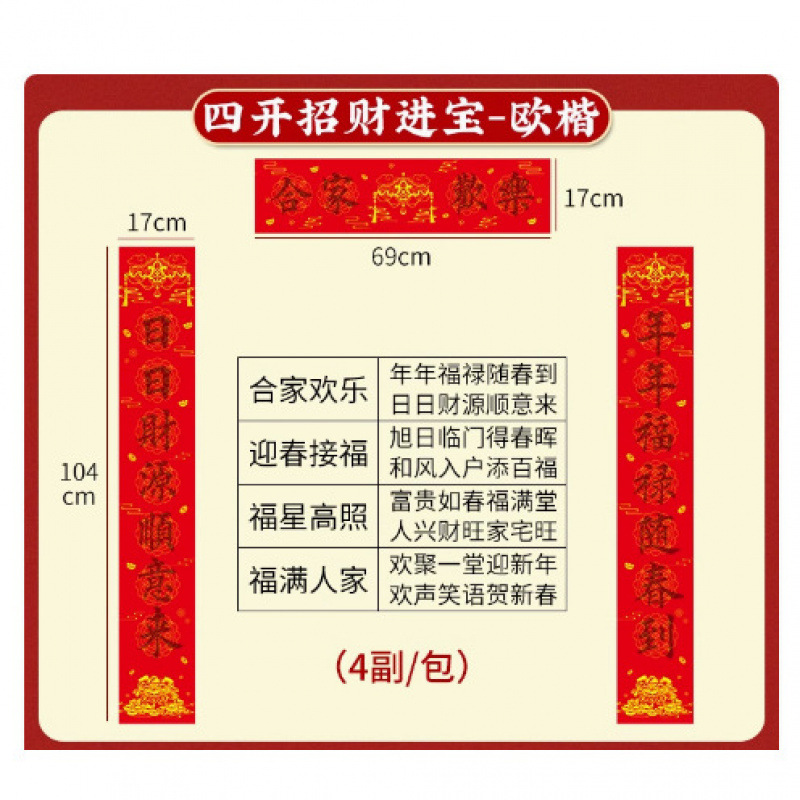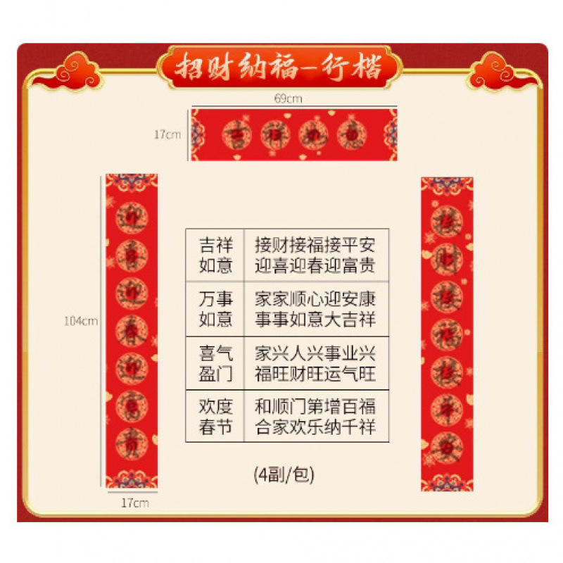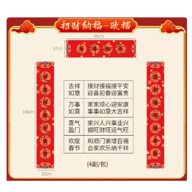 四开招财进宝欧楷(17*104cm)4副/包 USD $1.01 49935 piece available