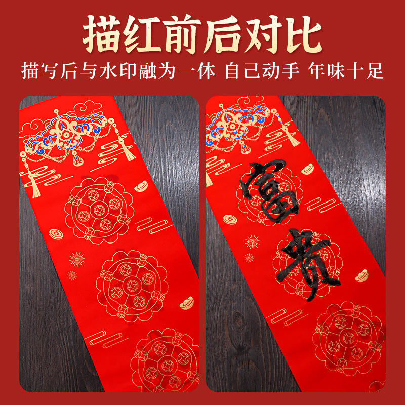 马年洒金春联批发摆摊蜡染春联描红对联纸宣纸万年红手写柳楷对联