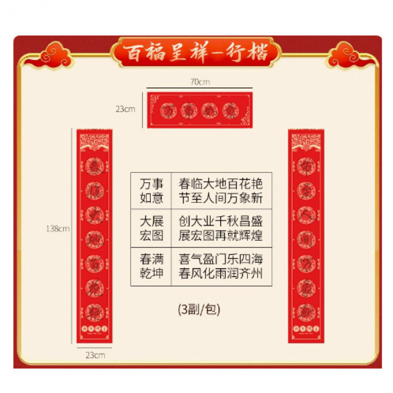 三开百福呈祥欧楷(23*138cm)3副/包 USD $1.29 49973 piece available