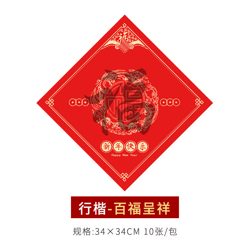 行楷如意金卷福字纸10张(34*34cm) USD $0.58 49977 piece available