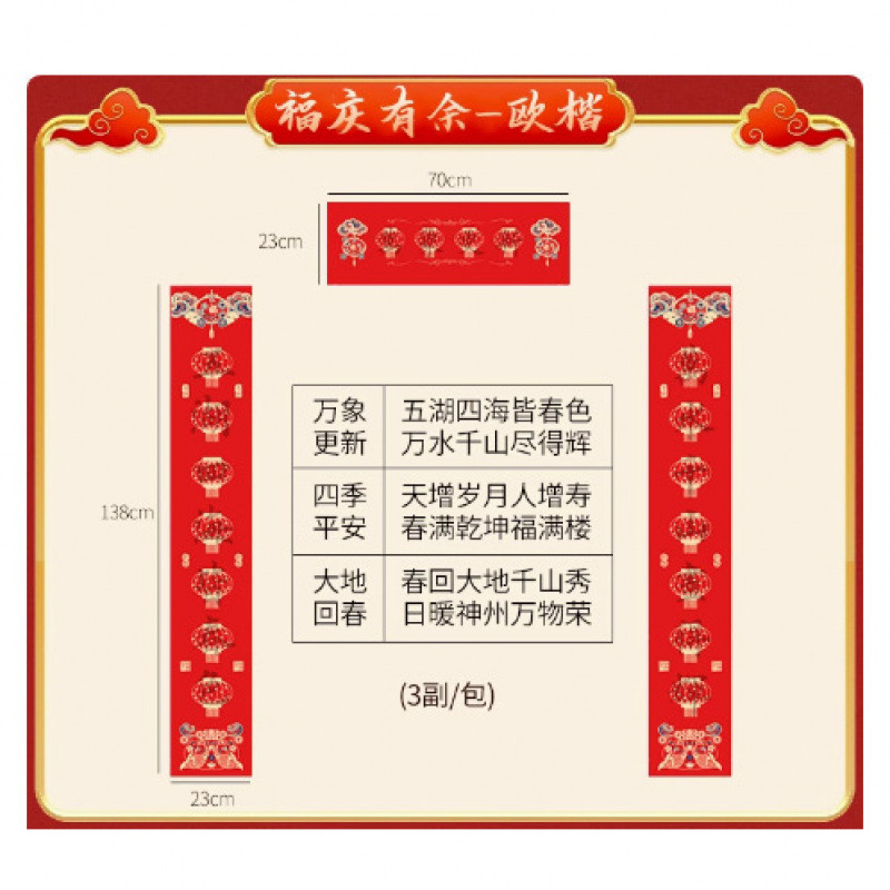 三开招财进宝欧楷(23*138cm)3副/包 USD $1.29 49906 piece available