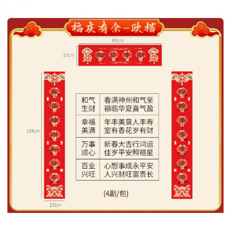 四开福庆有余欧楷(17*104cm)4副/包 USD $1.01 49949 piece available