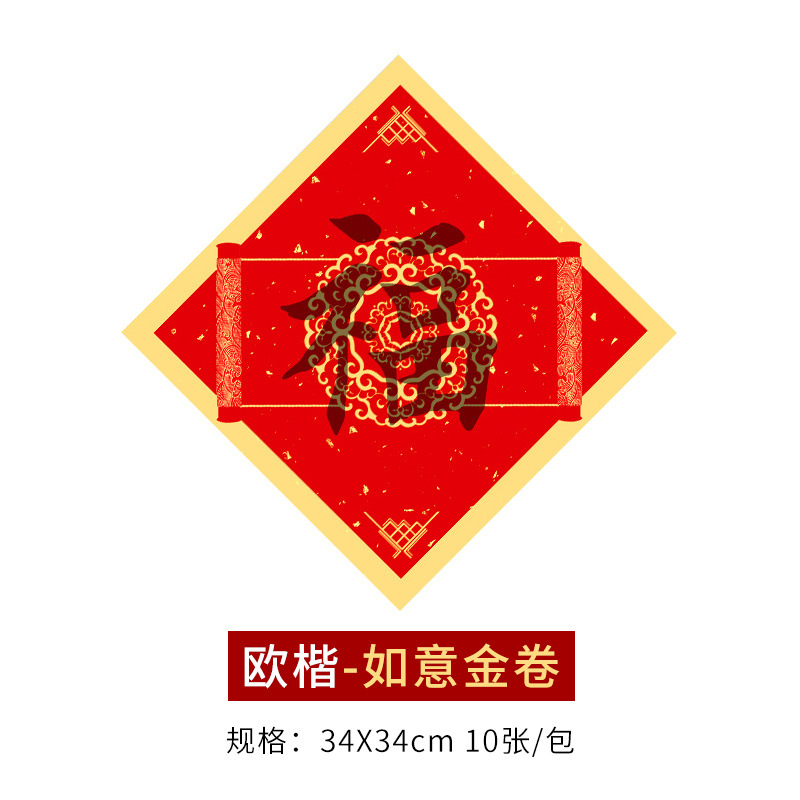 欧楷如意金卷福字纸10张(34*34cm) USD $0.58 49968 piece available