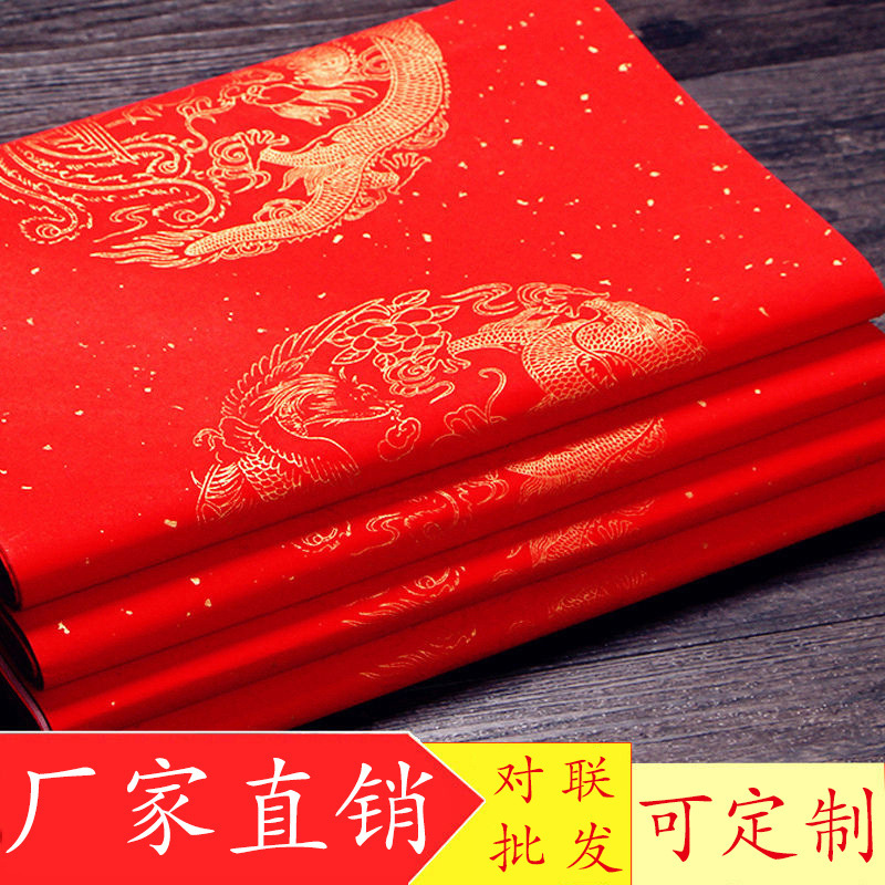 horse year gold sprinkling new year couplet wholesale stall wax dye new year couplet tracing couplet paper xuan paper wannianhong handwriting liu regular script couplet