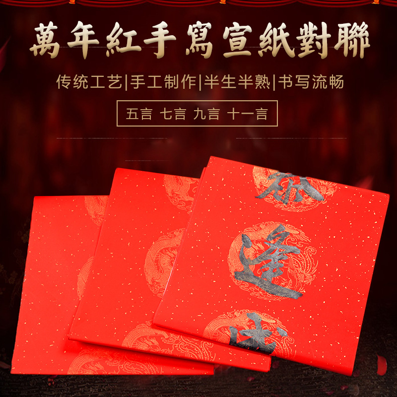 万年红宣纸龙凤对联书法春联纸斗方福字半生半熟手写空白对联批发