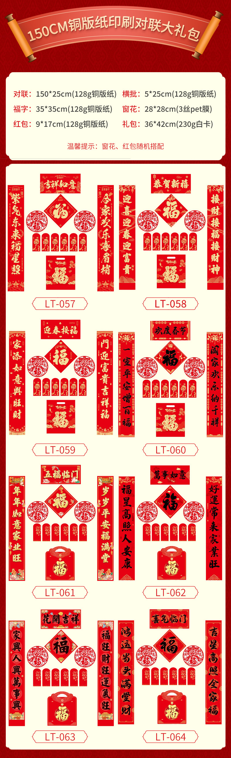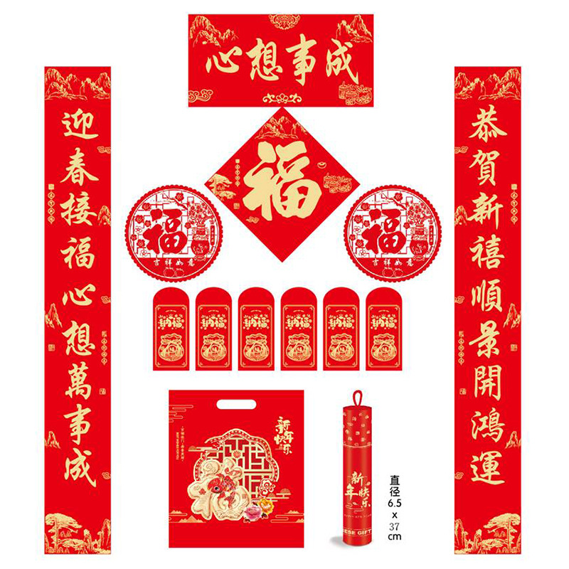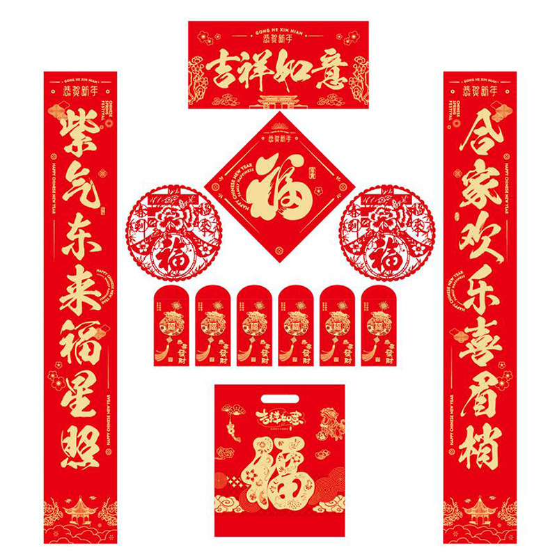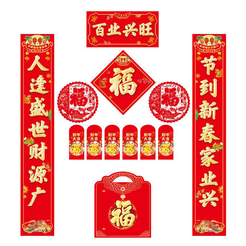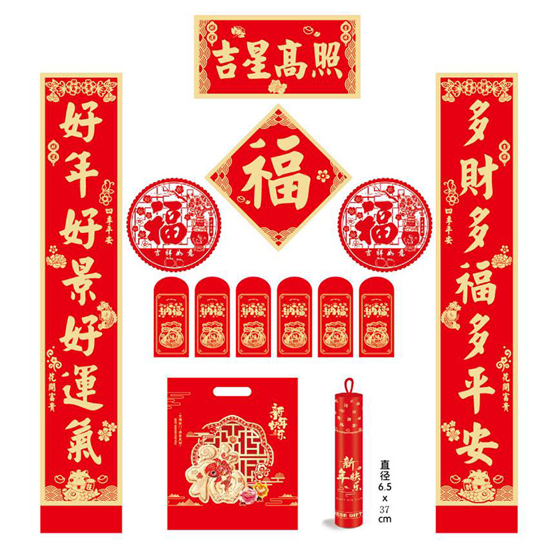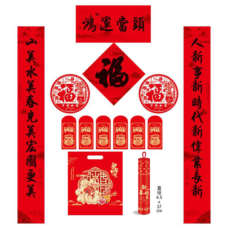 新年对联大礼包现货春节福字红包春联套装企业广告对联喜联定制