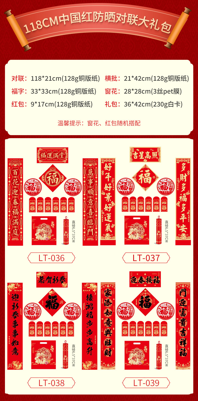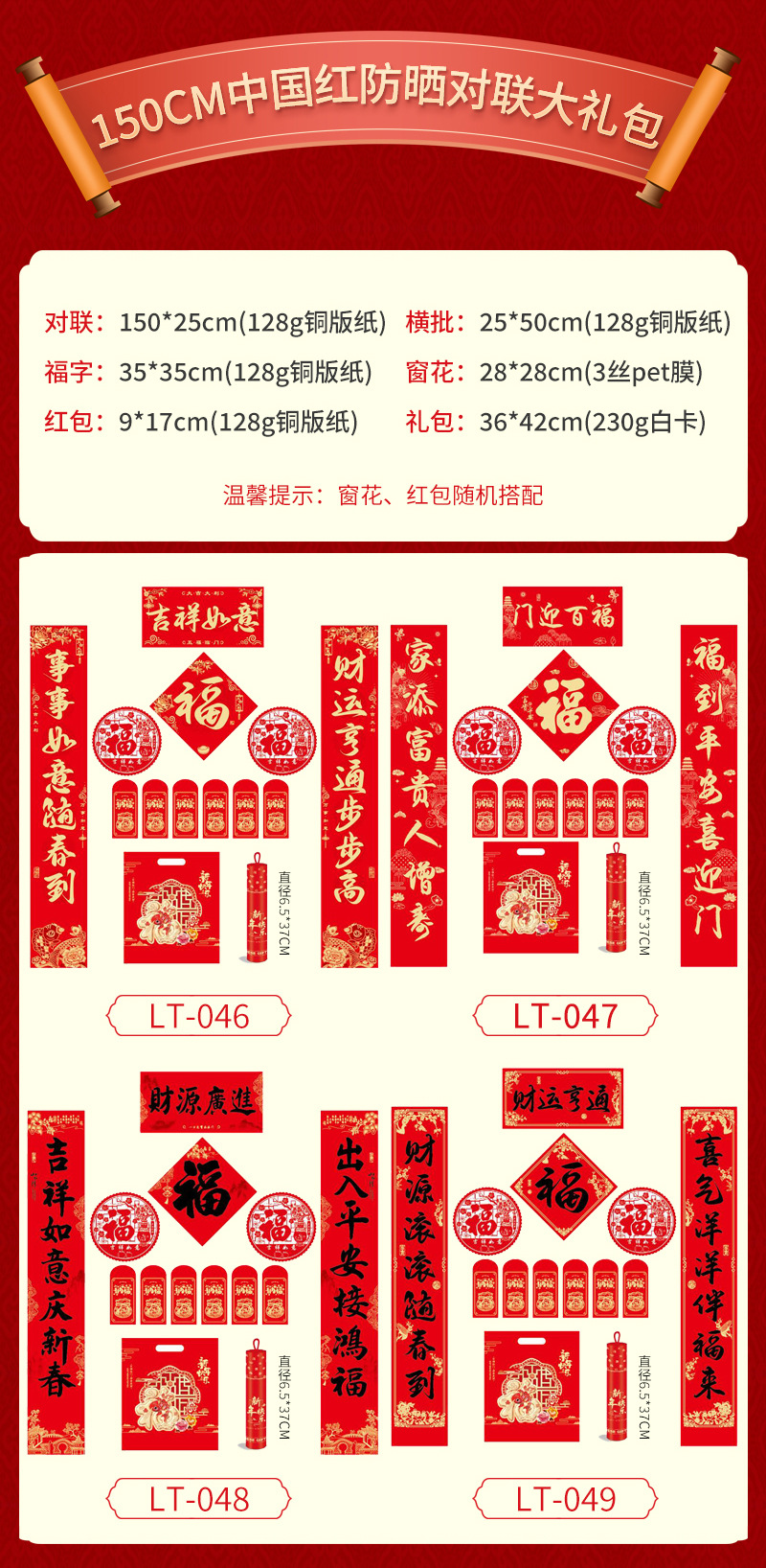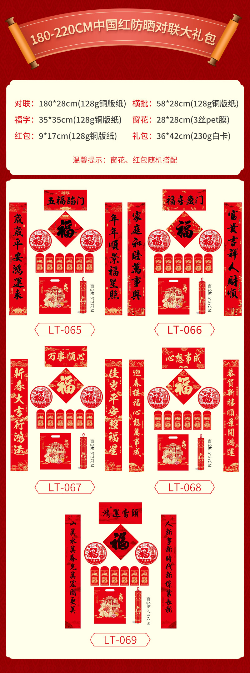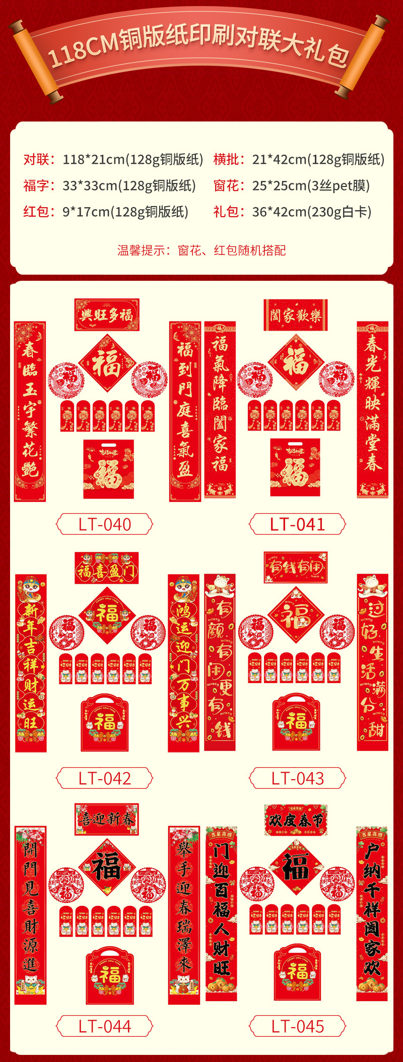新年对联大礼包现货春节福字红包春联套装企业广告对联喜联定制