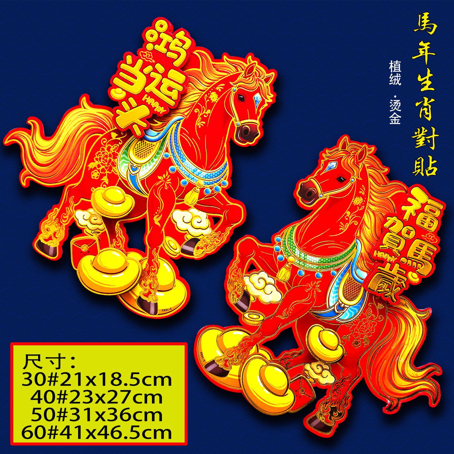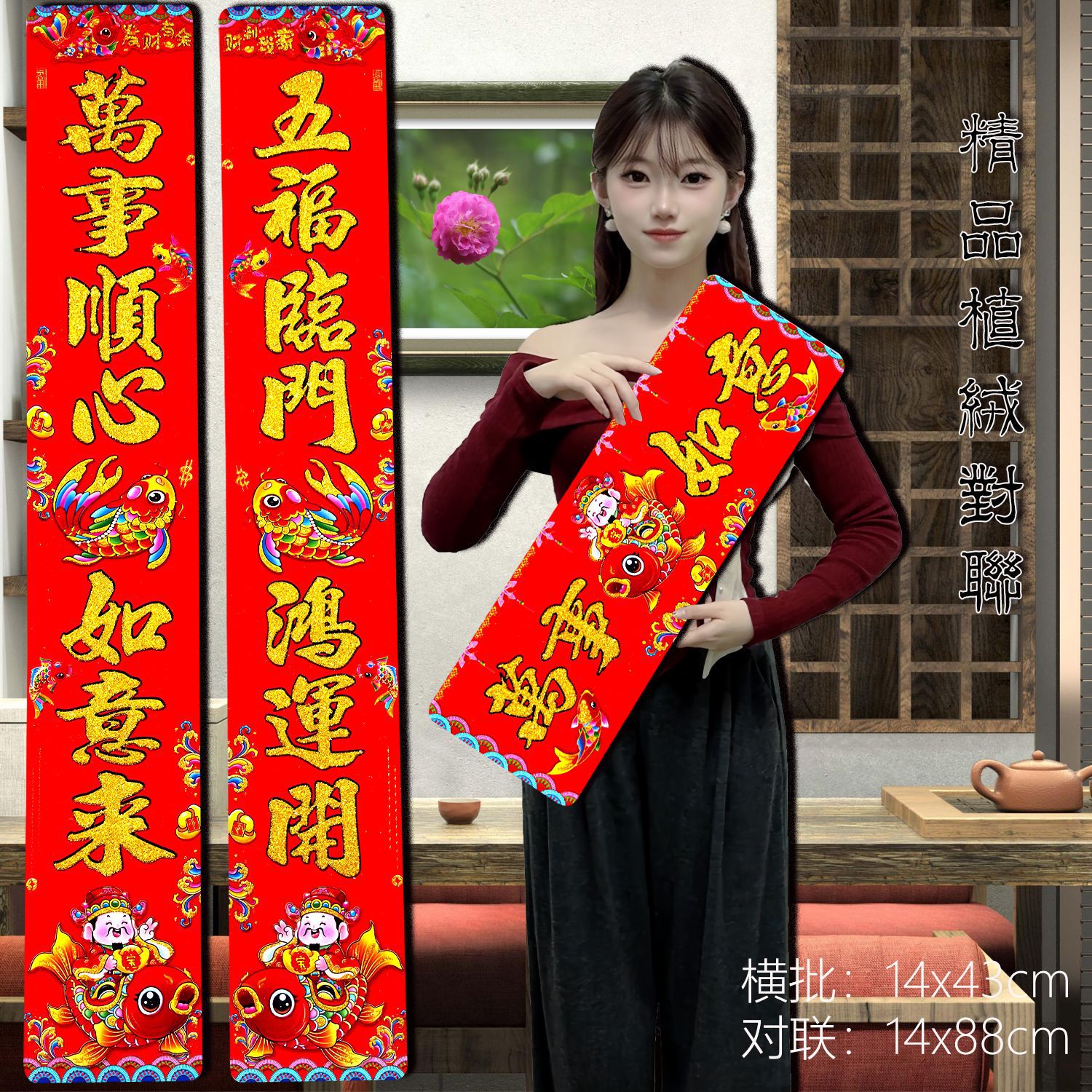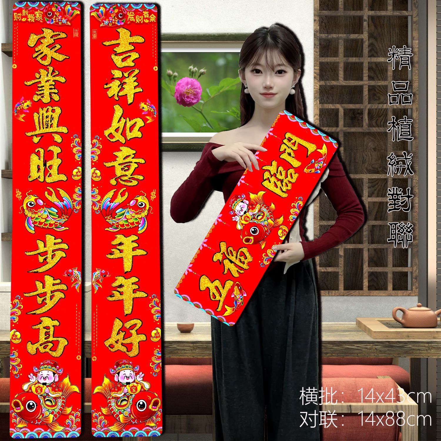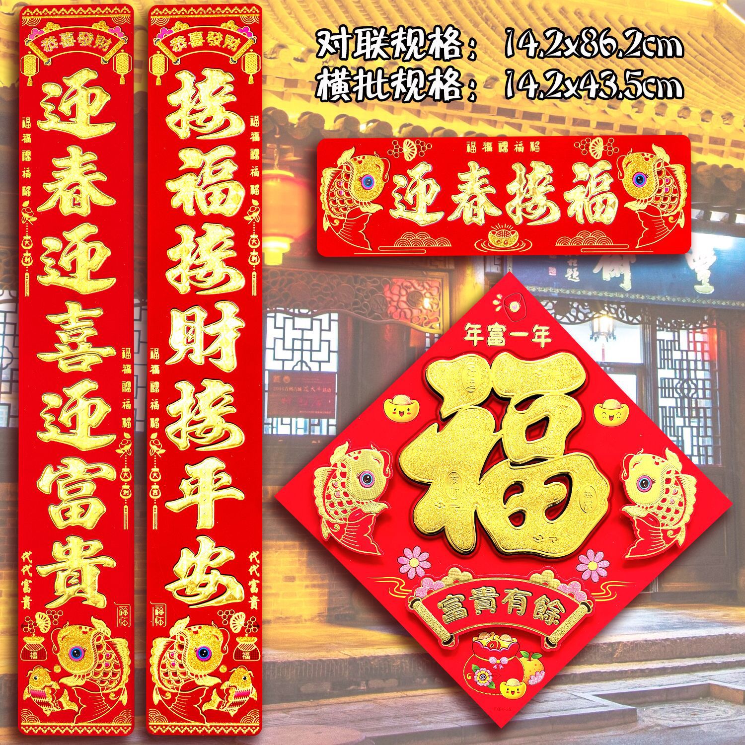 植绒烫金对联硬卡纸生肖带全背胶对联入户门对联植绒对联立体对贴