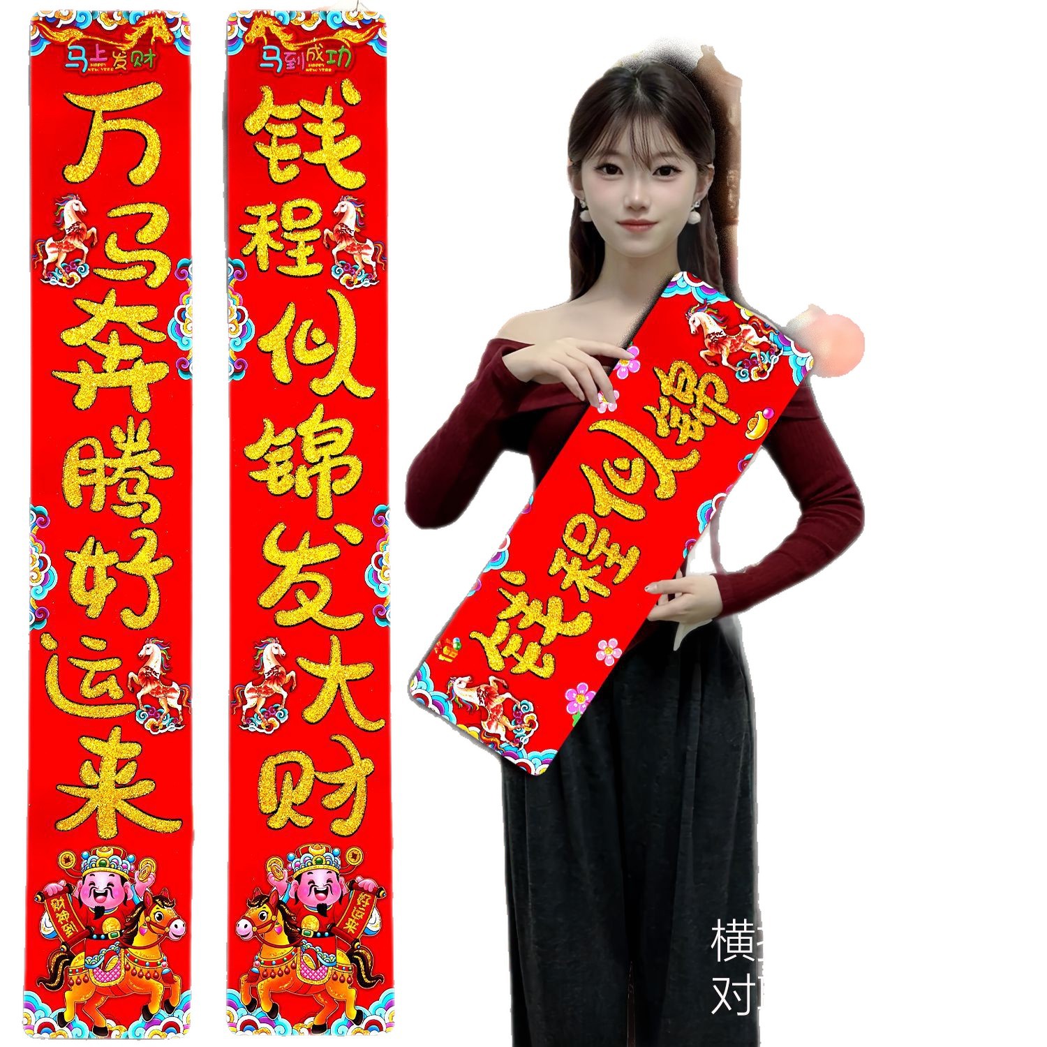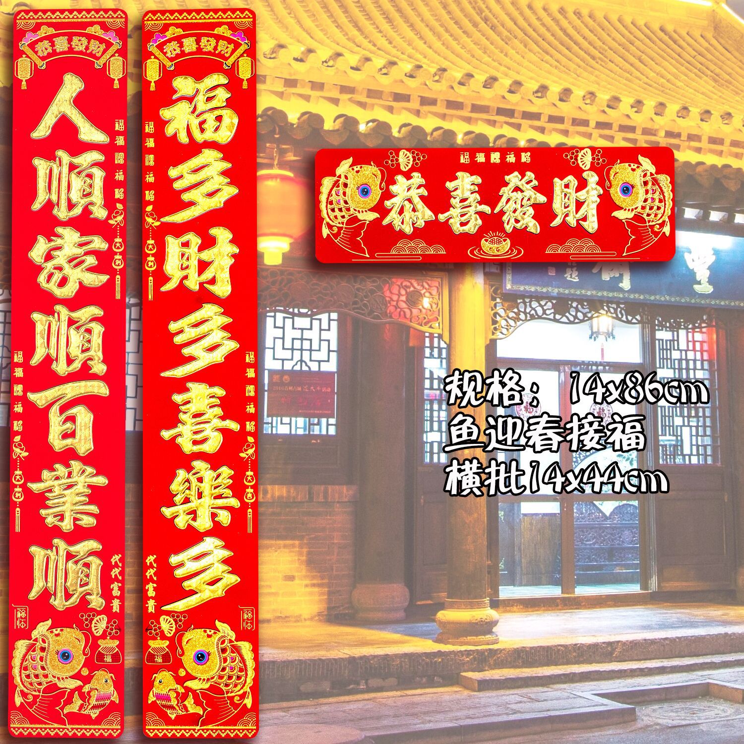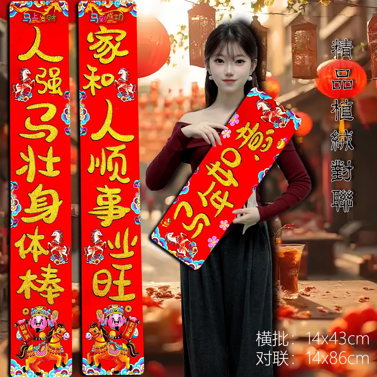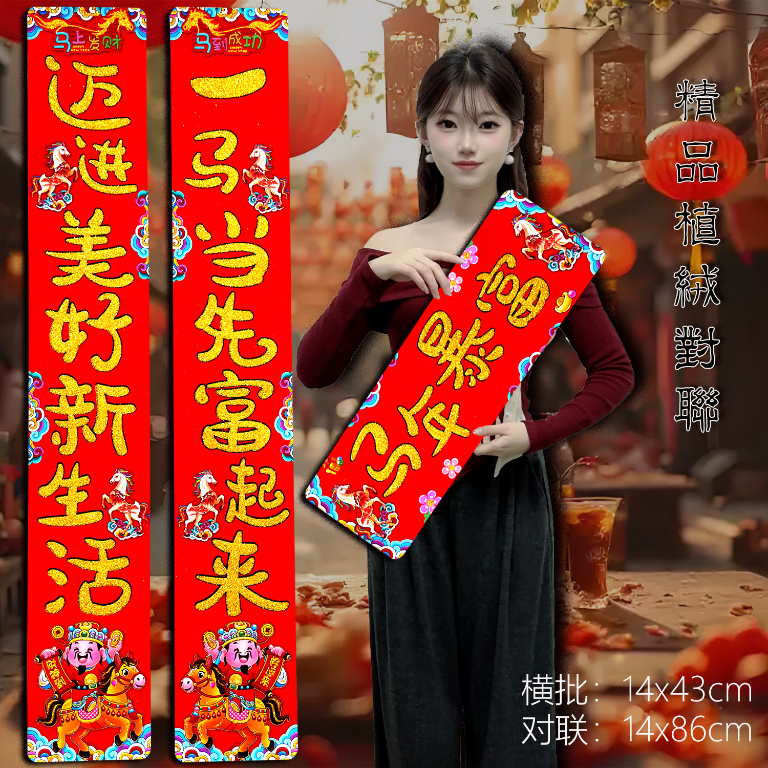 植绒烫金对联硬卡纸生肖带全背胶对联入户门对联植绒对联立体对贴