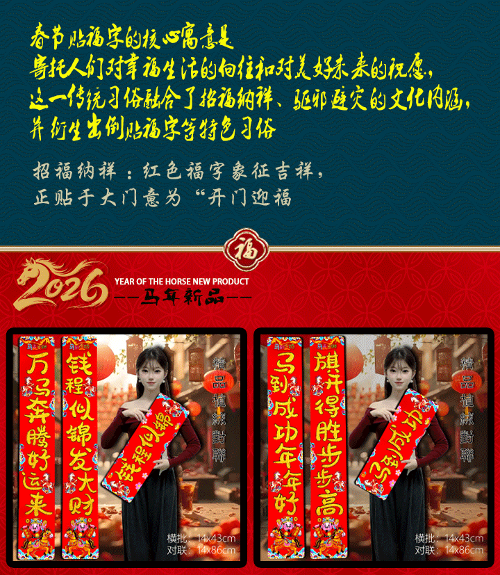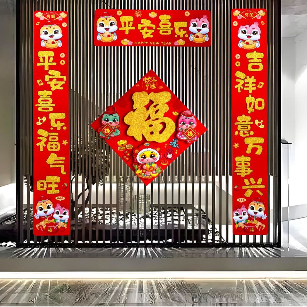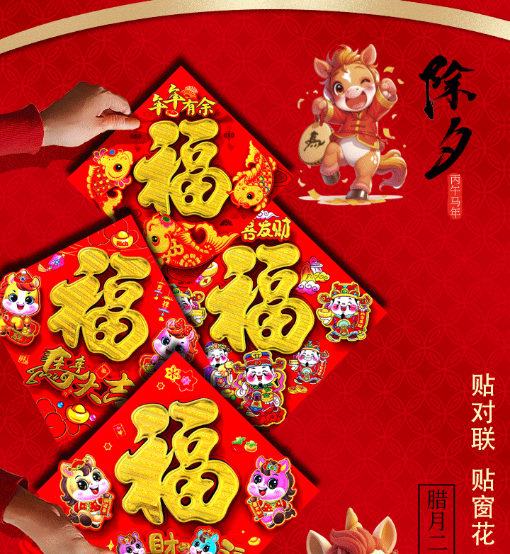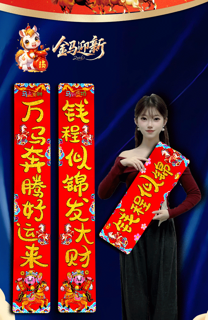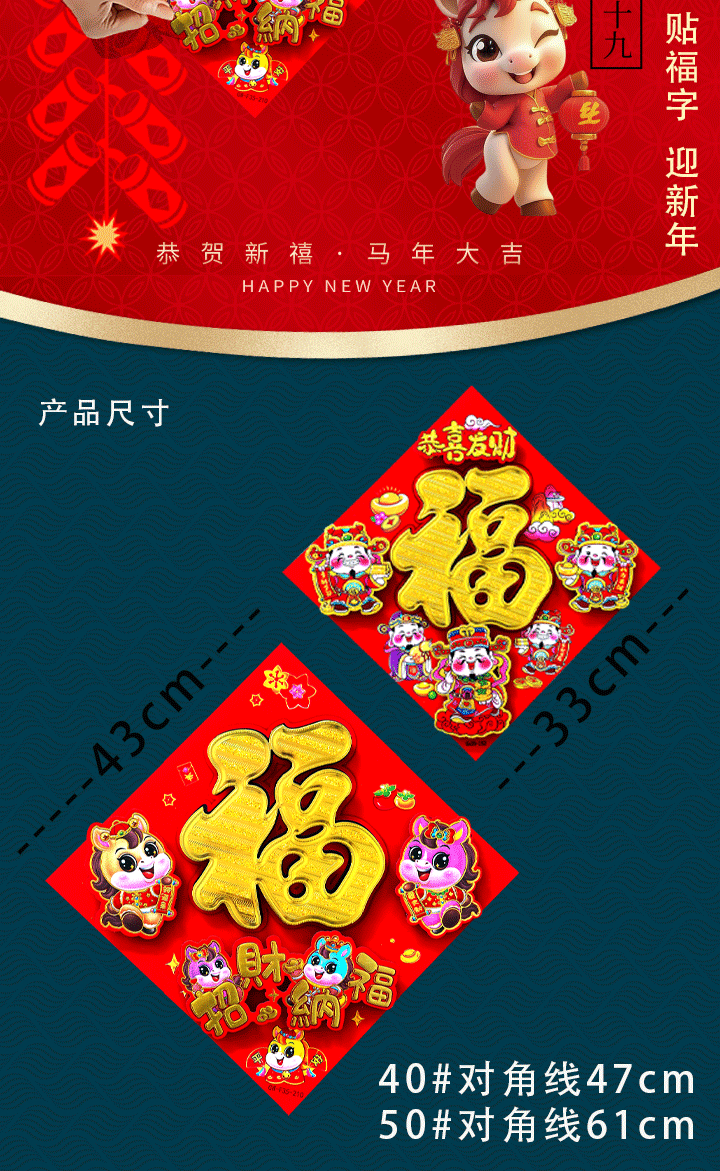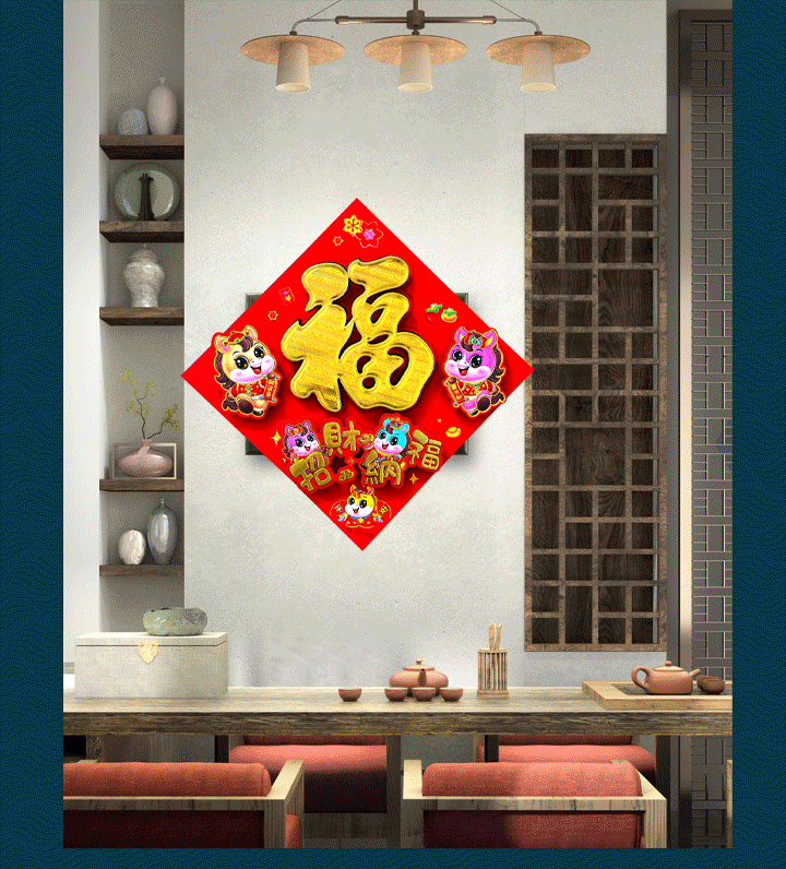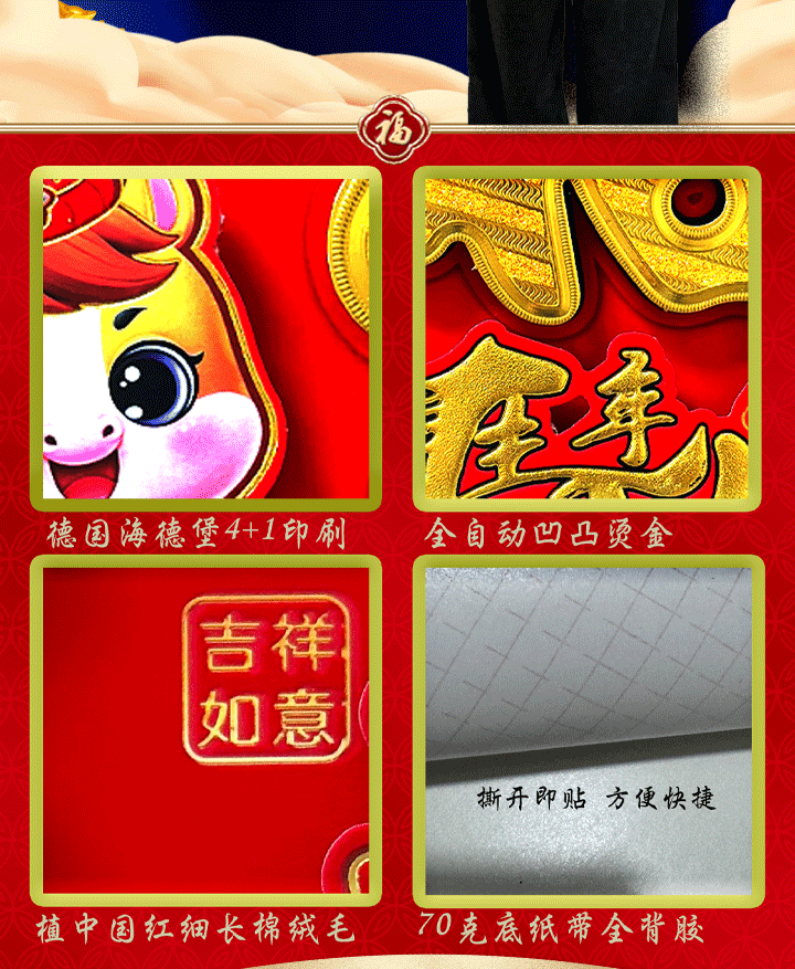 植绒烫金对联硬卡纸生肖带全背胶对联入户门对联植绒对联立体对贴
