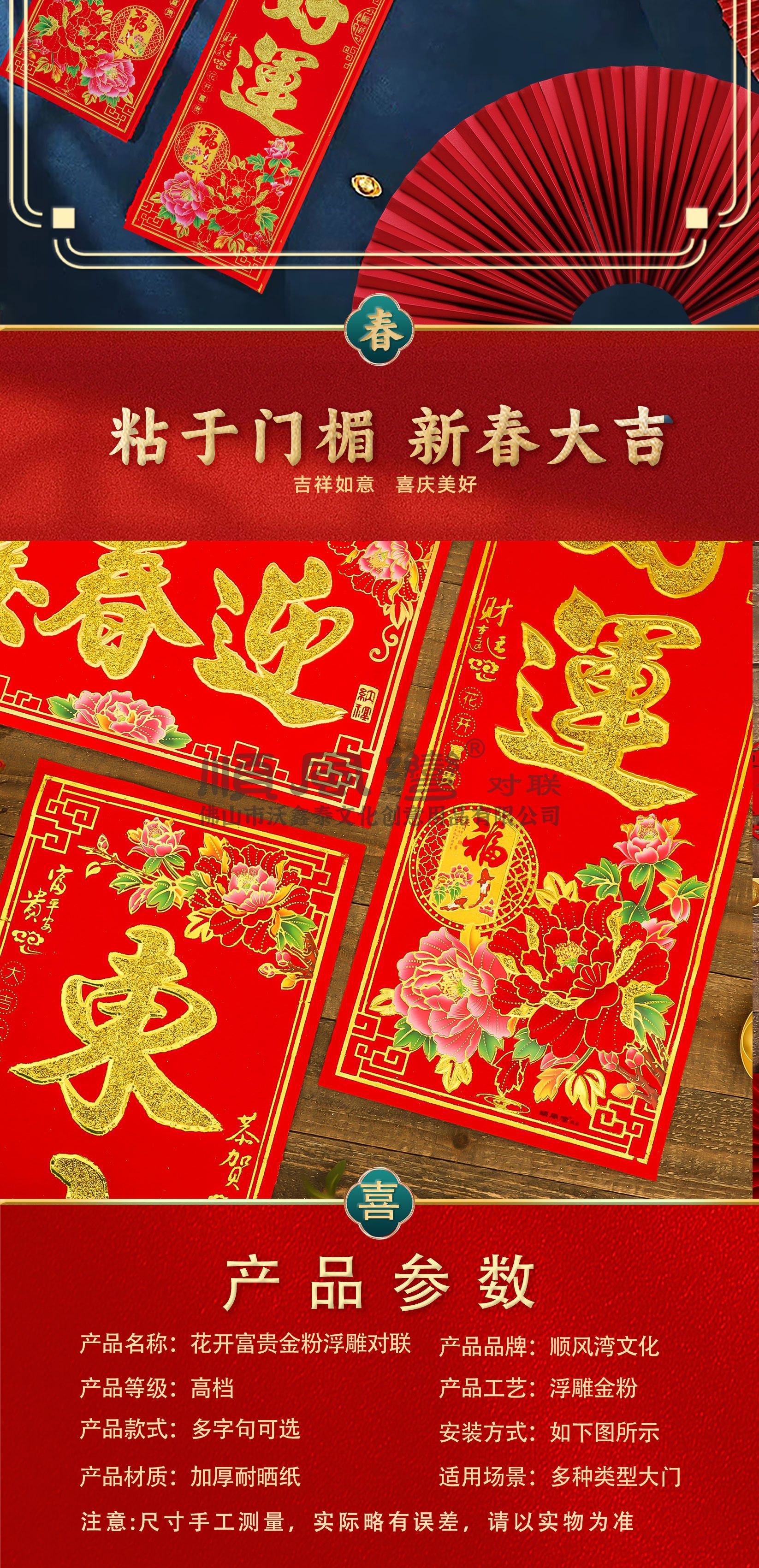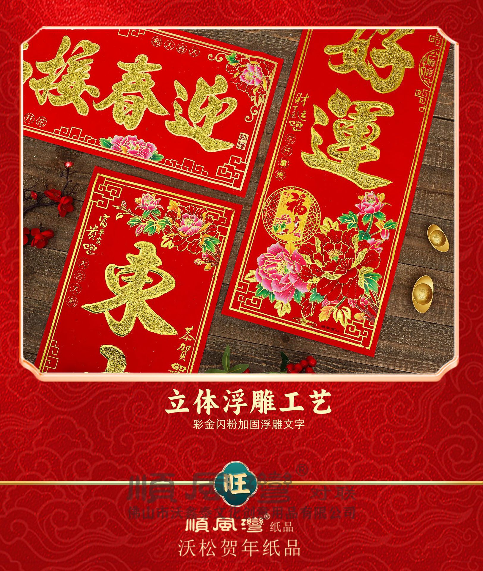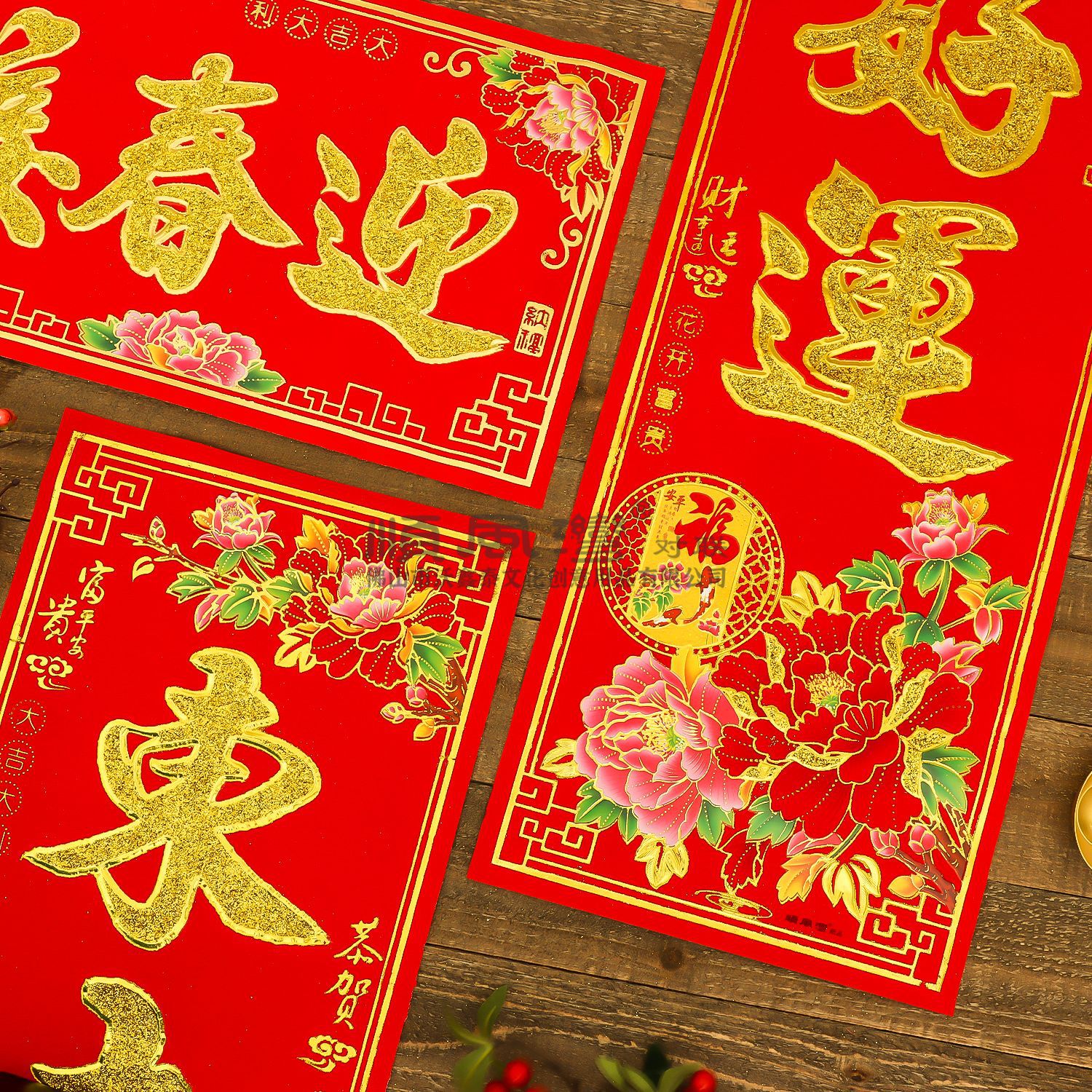 shunfeng bay new year couplet bronzing gold powder new year spring festival gate stickers flocking decorative door sticker batch couplet chinese new year decoration