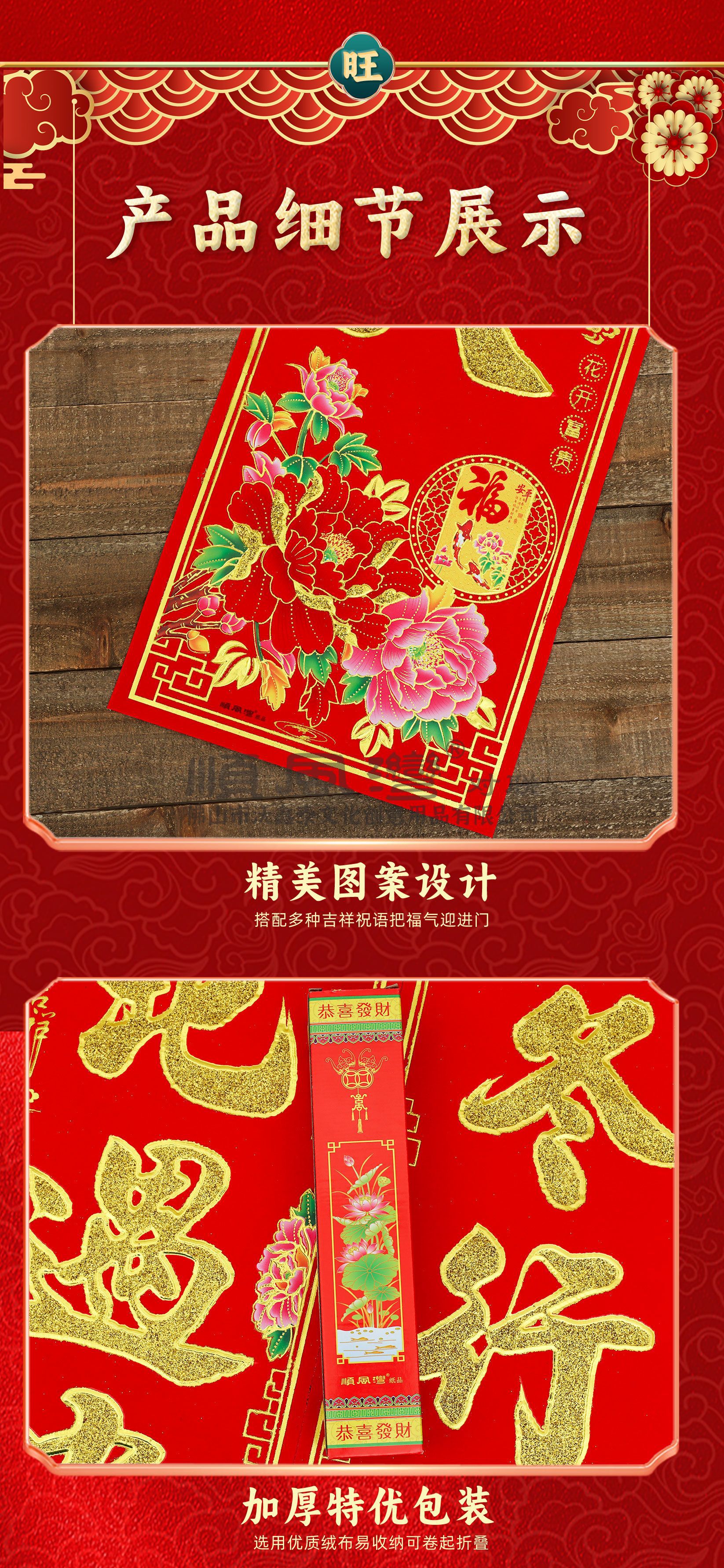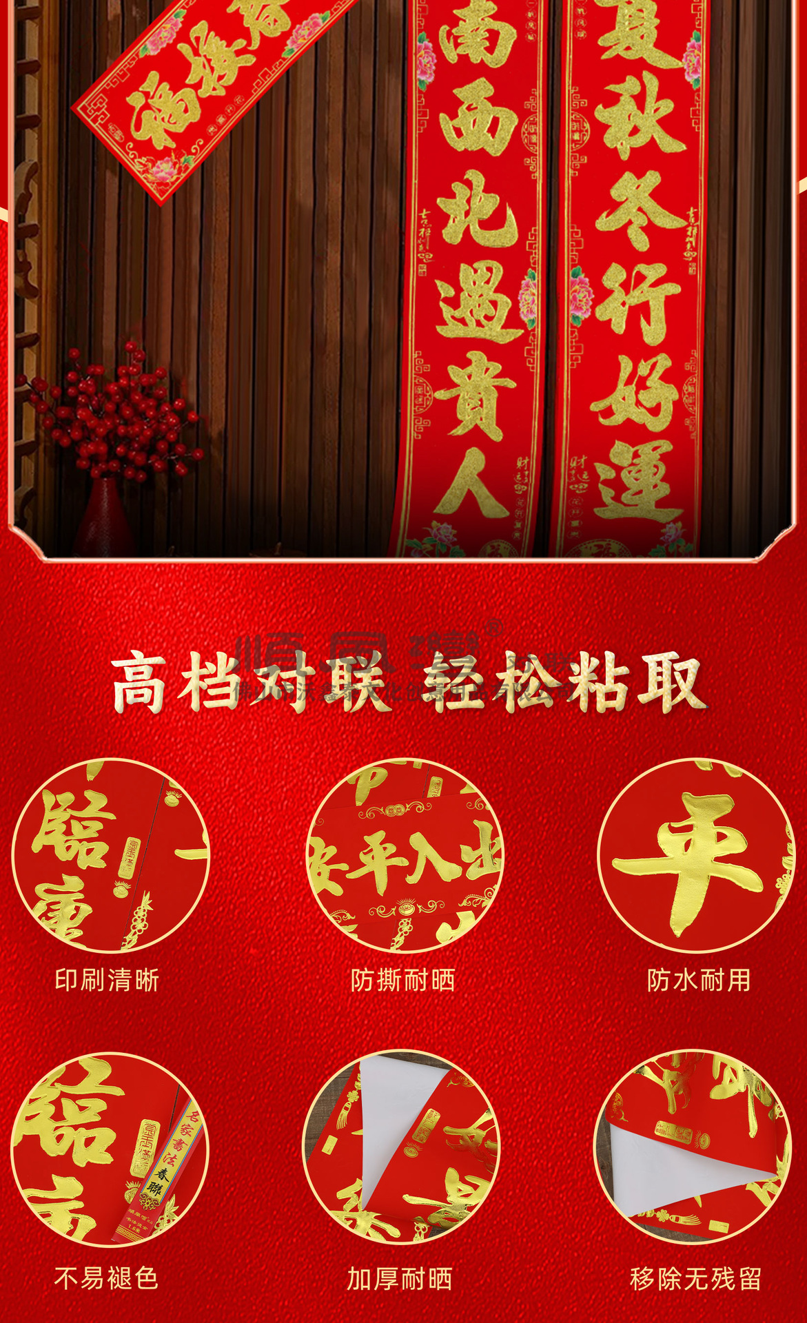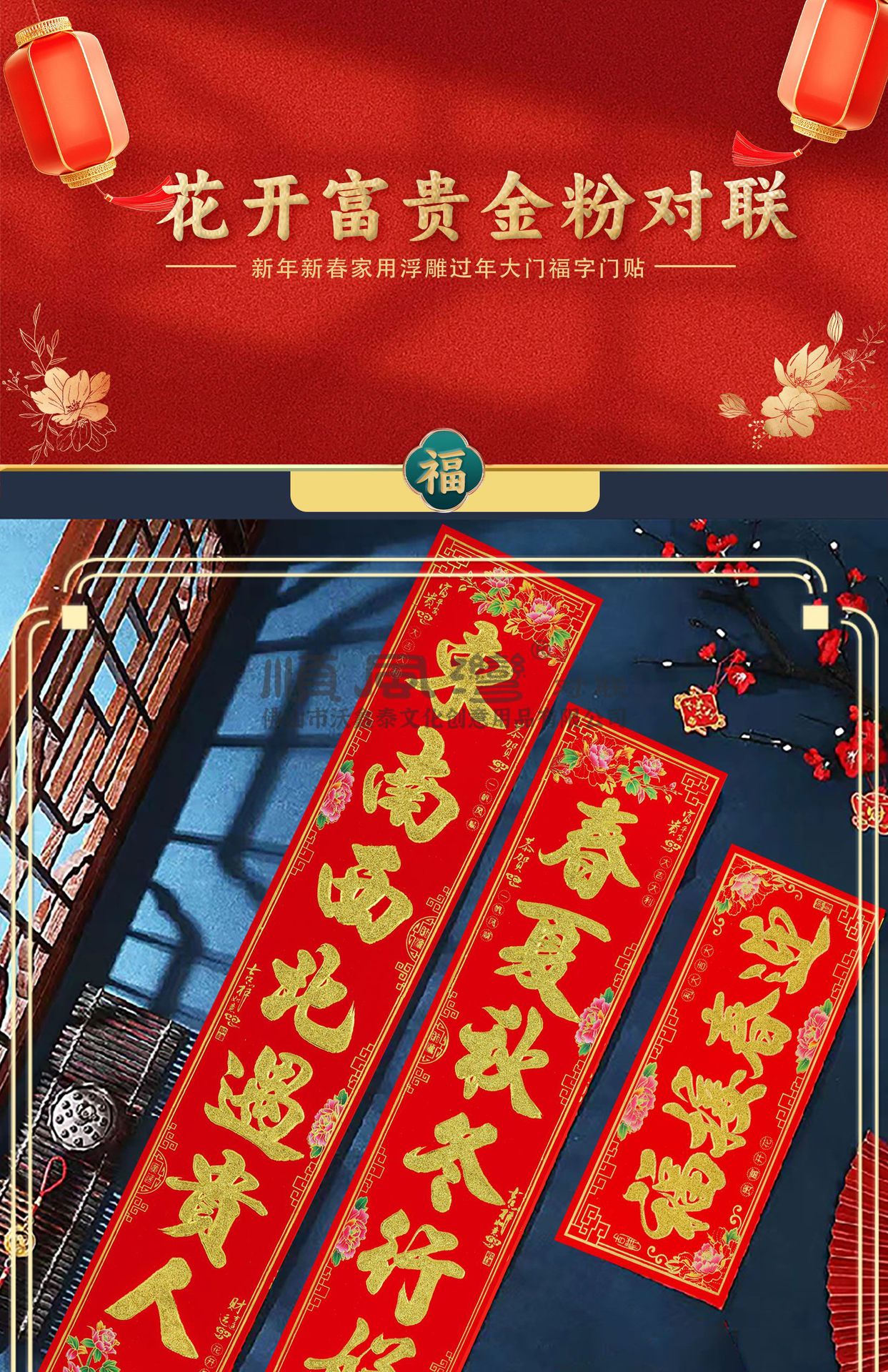 shunfeng bay new year couplet bronzing gold powder new year spring festival gate stickers flocking decorative door sticker batch couplet chinese new year decoration