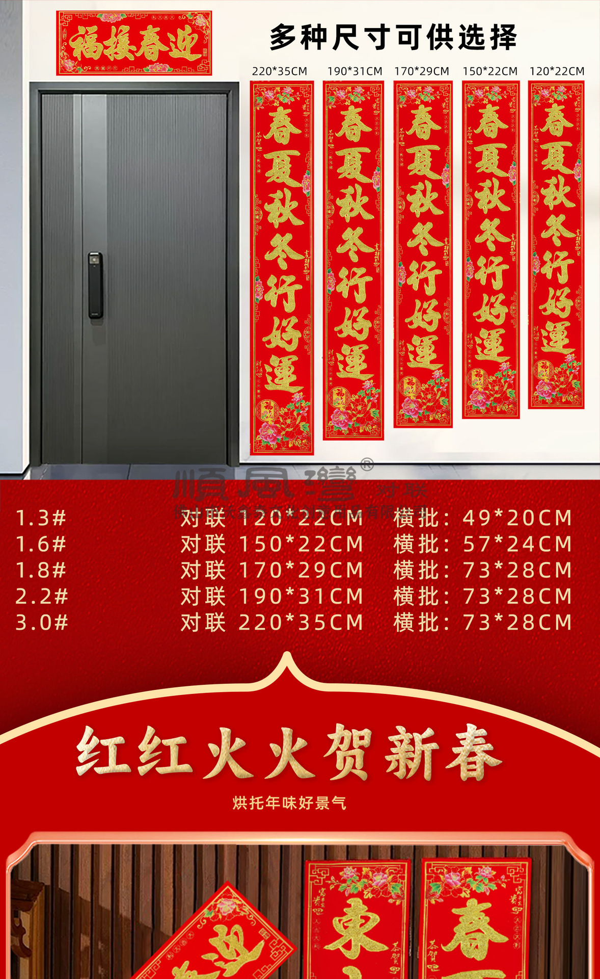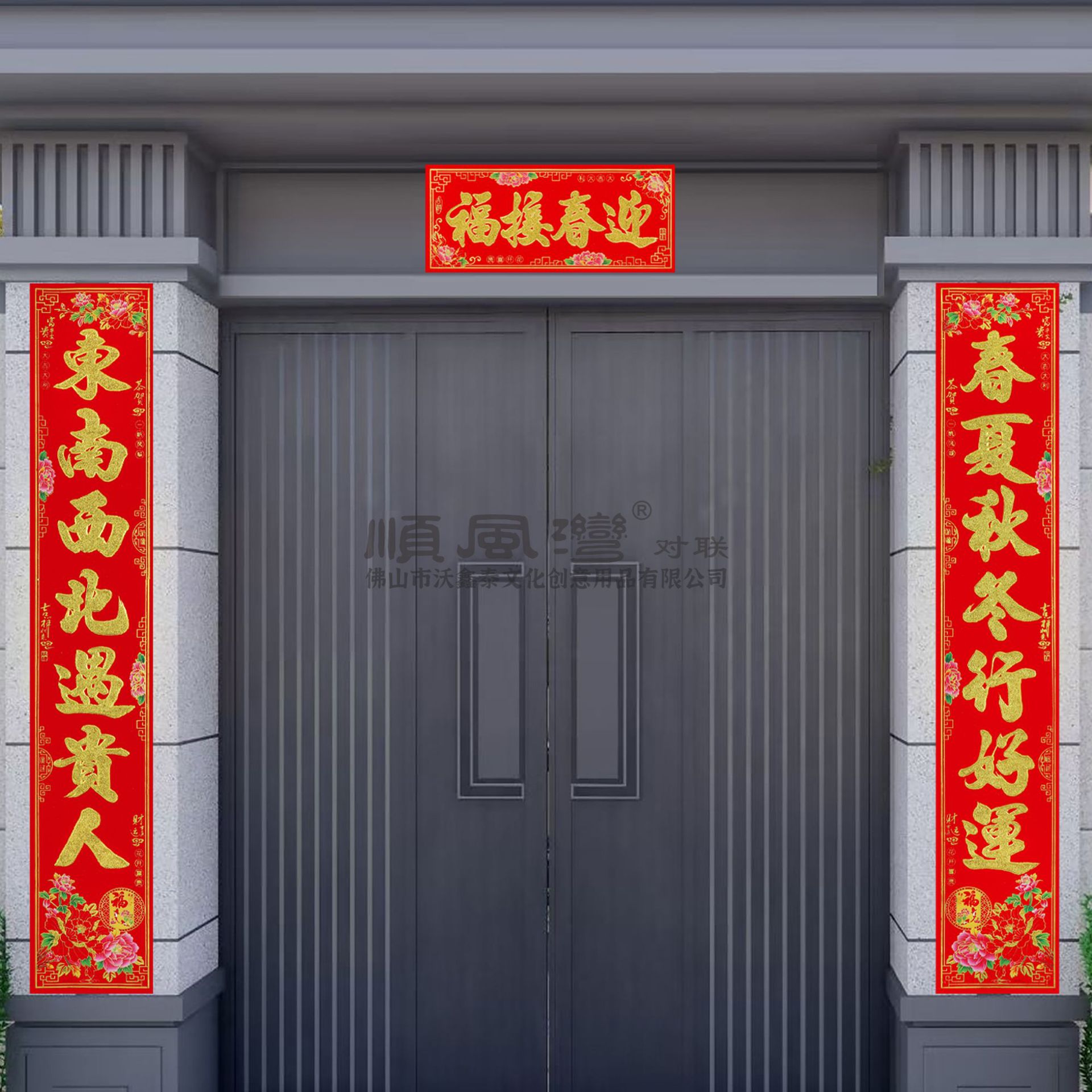 顺风湾春联烫金金粉新年春节大门贴植绒装饰门贴批货对联春节装饰