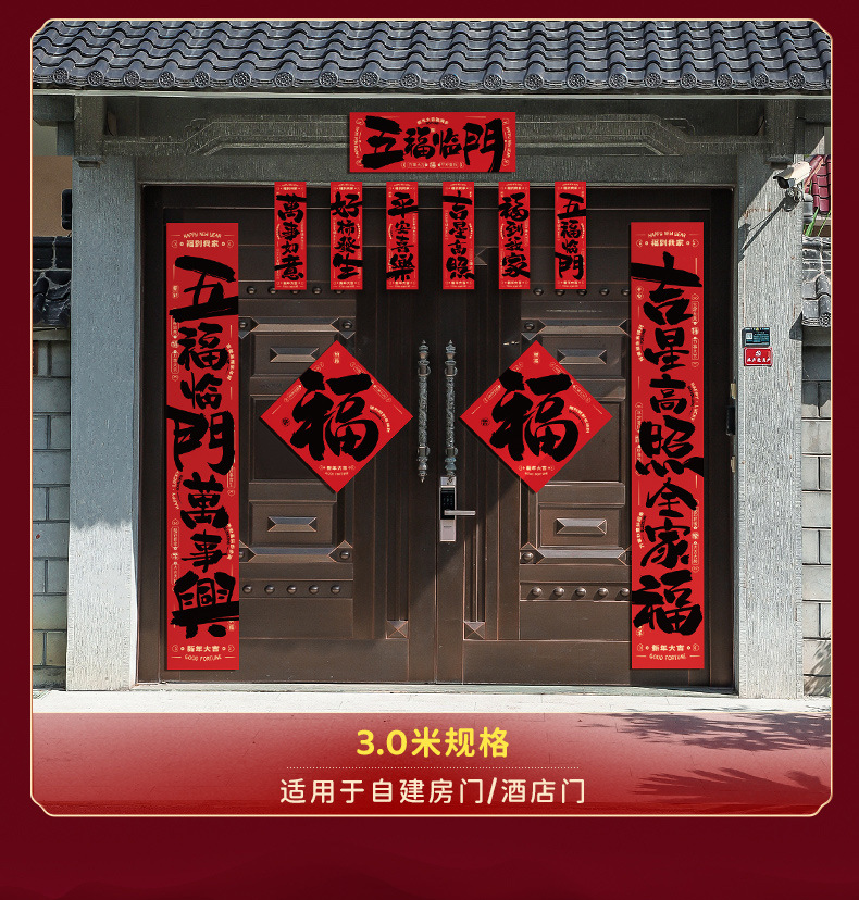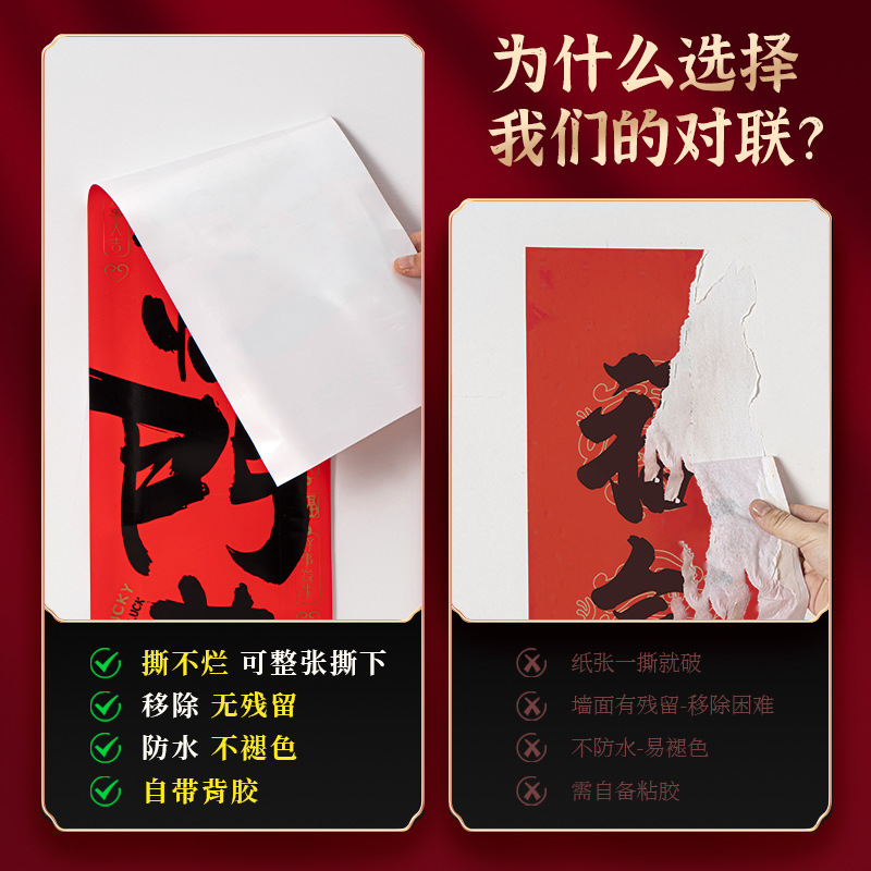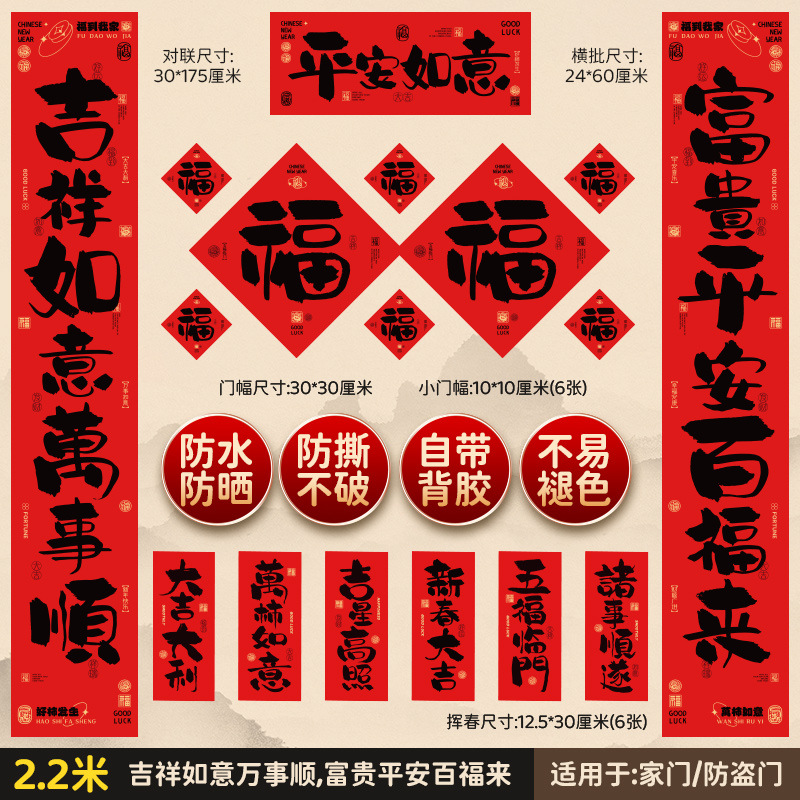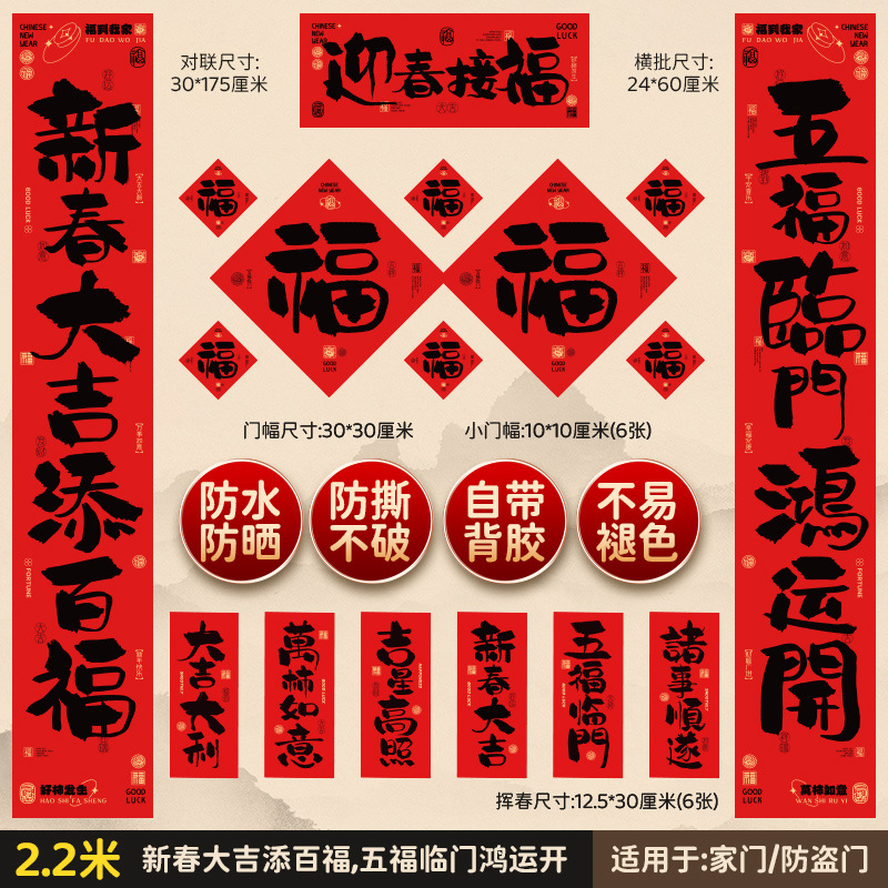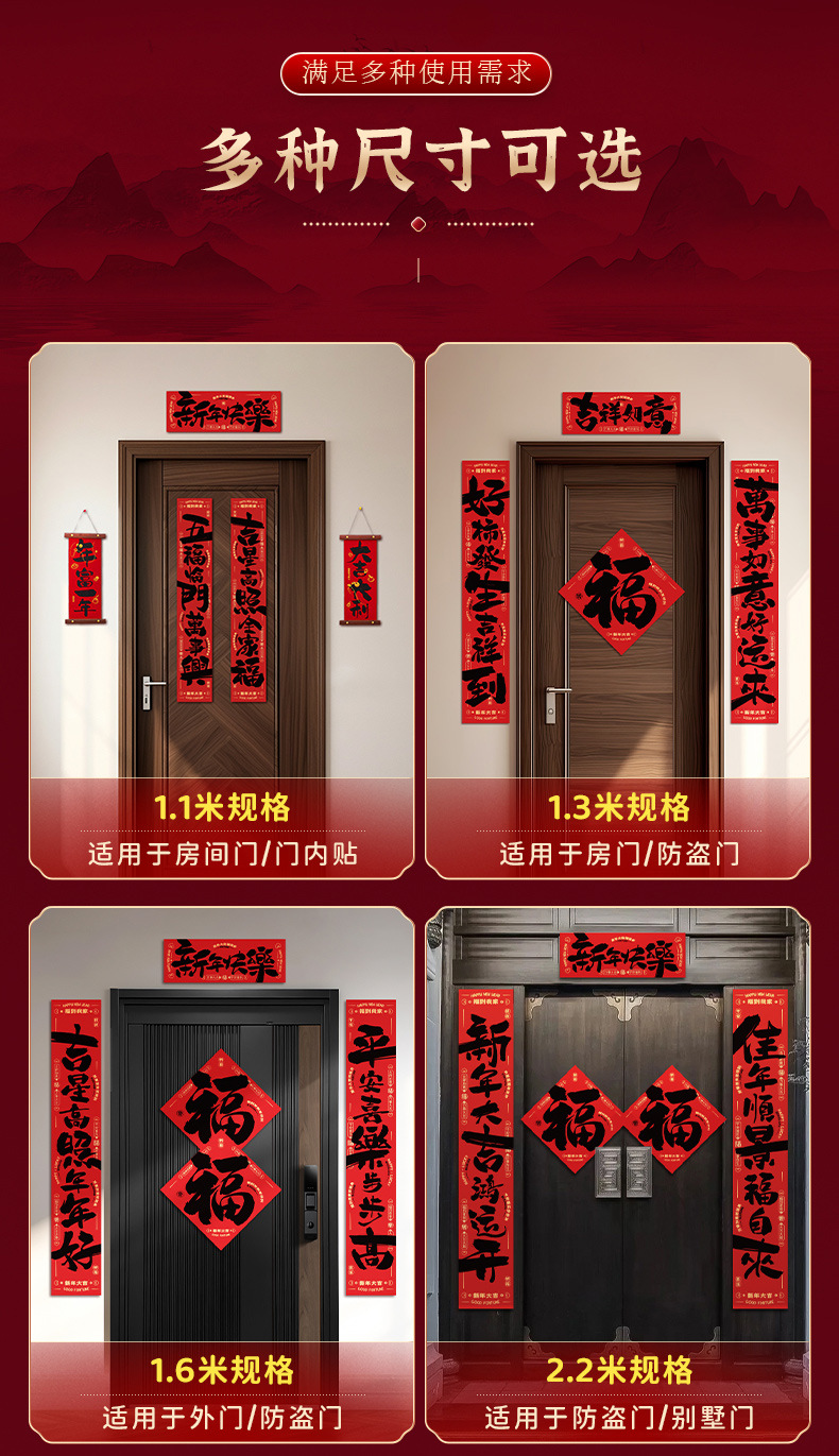 2026马年新款防水对联春联家用高档福字门贴新年春节大门布置用品