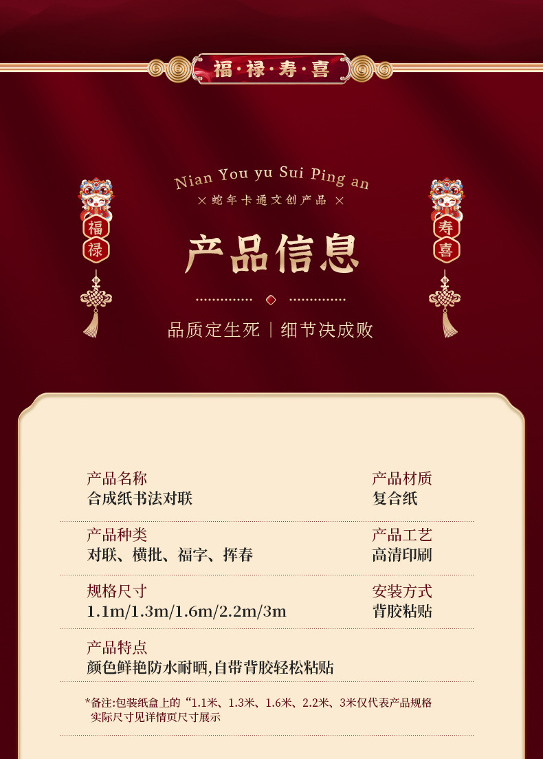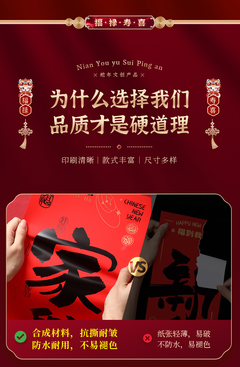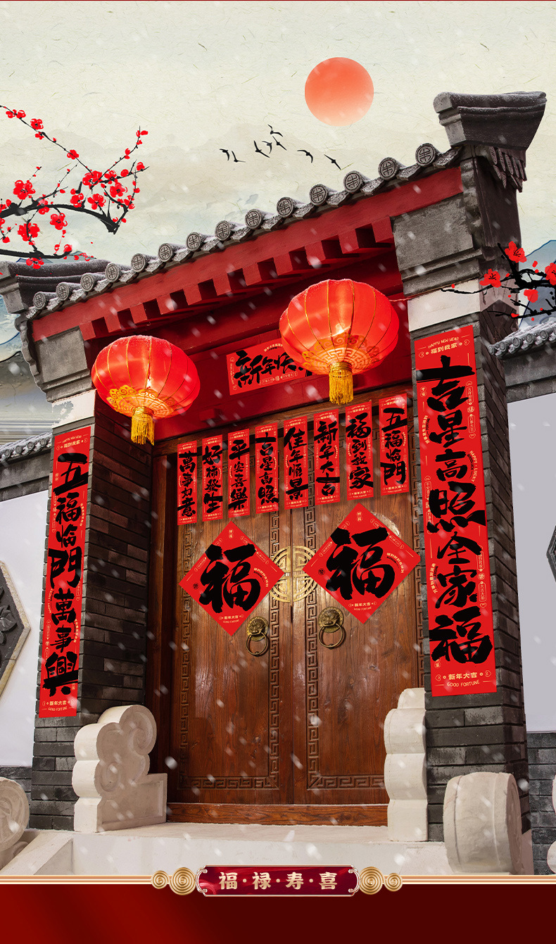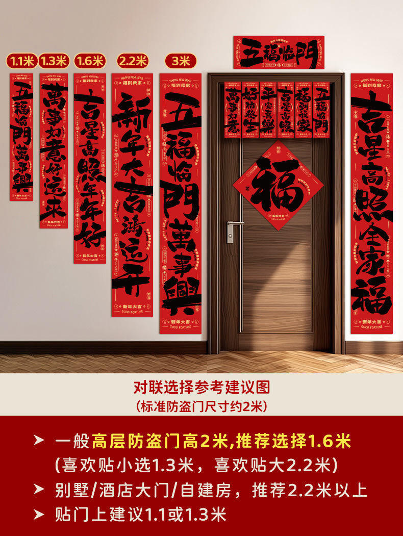 2026马年新款防水对联春联家用高档福字门贴新年春节大门布置用品