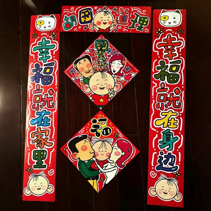 2025年春节大耳朵图图对联胡图图门联春联可爱宿舍卧室学生布置