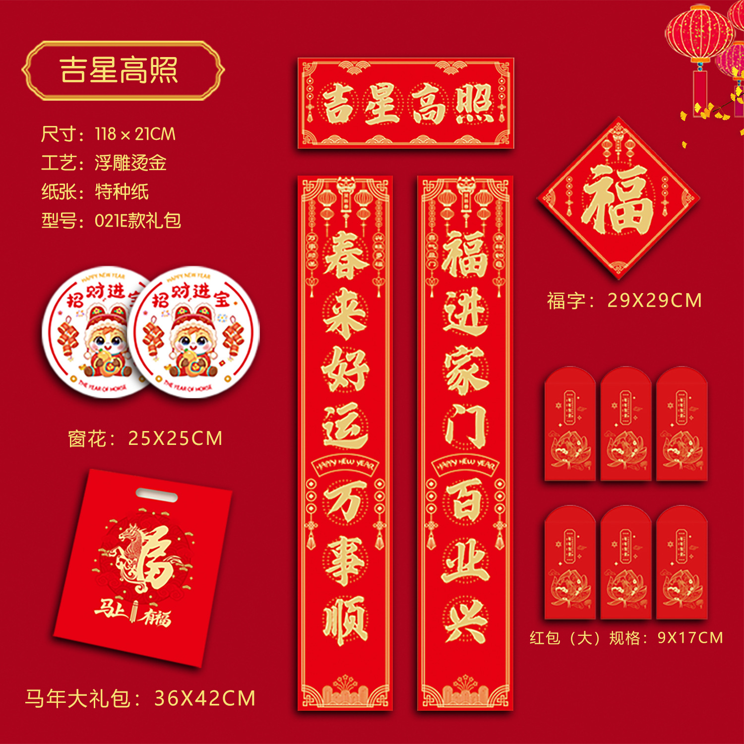 021特种纸烫金吉星高照118cm USD $1.21 4826 set available