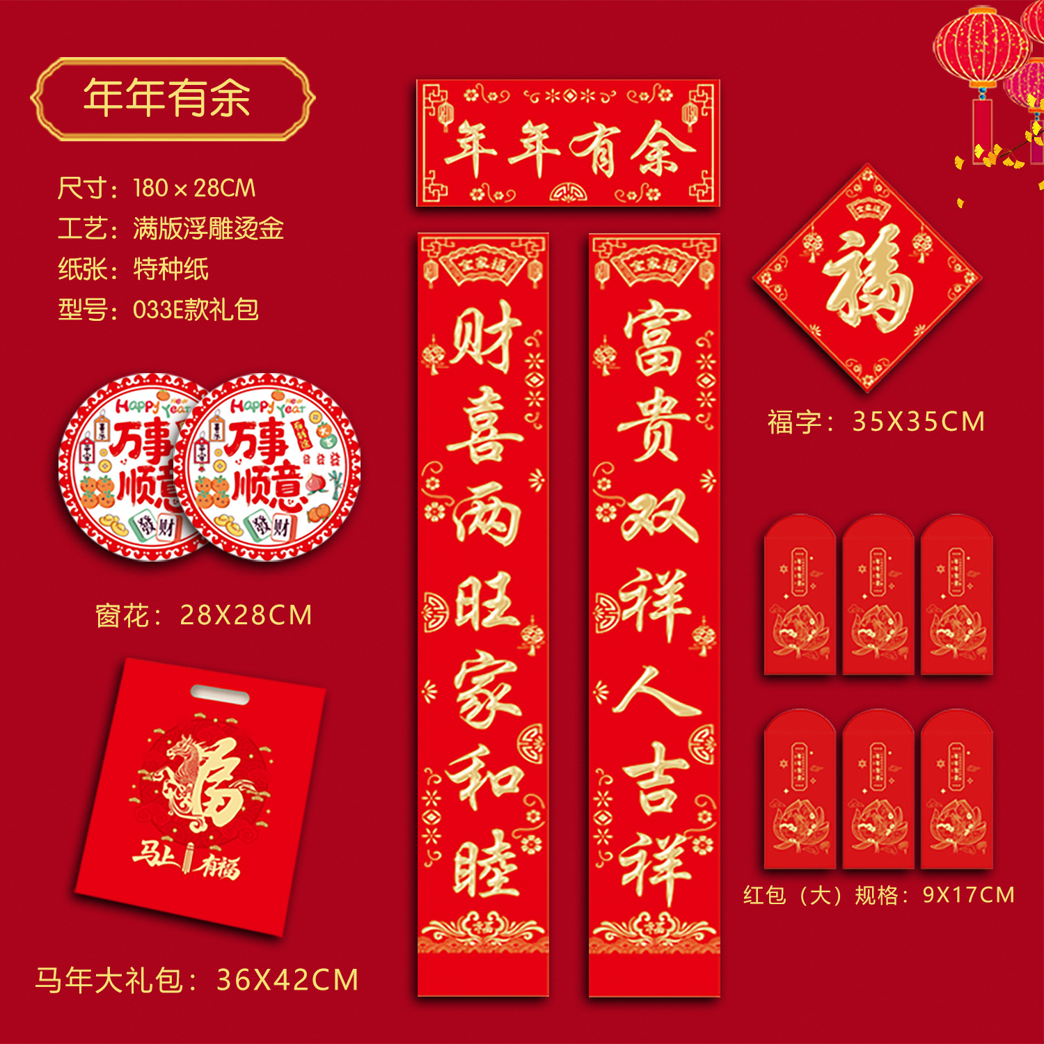 033特种纸烫金新春大吉180cm USD $1.77 4990 set available