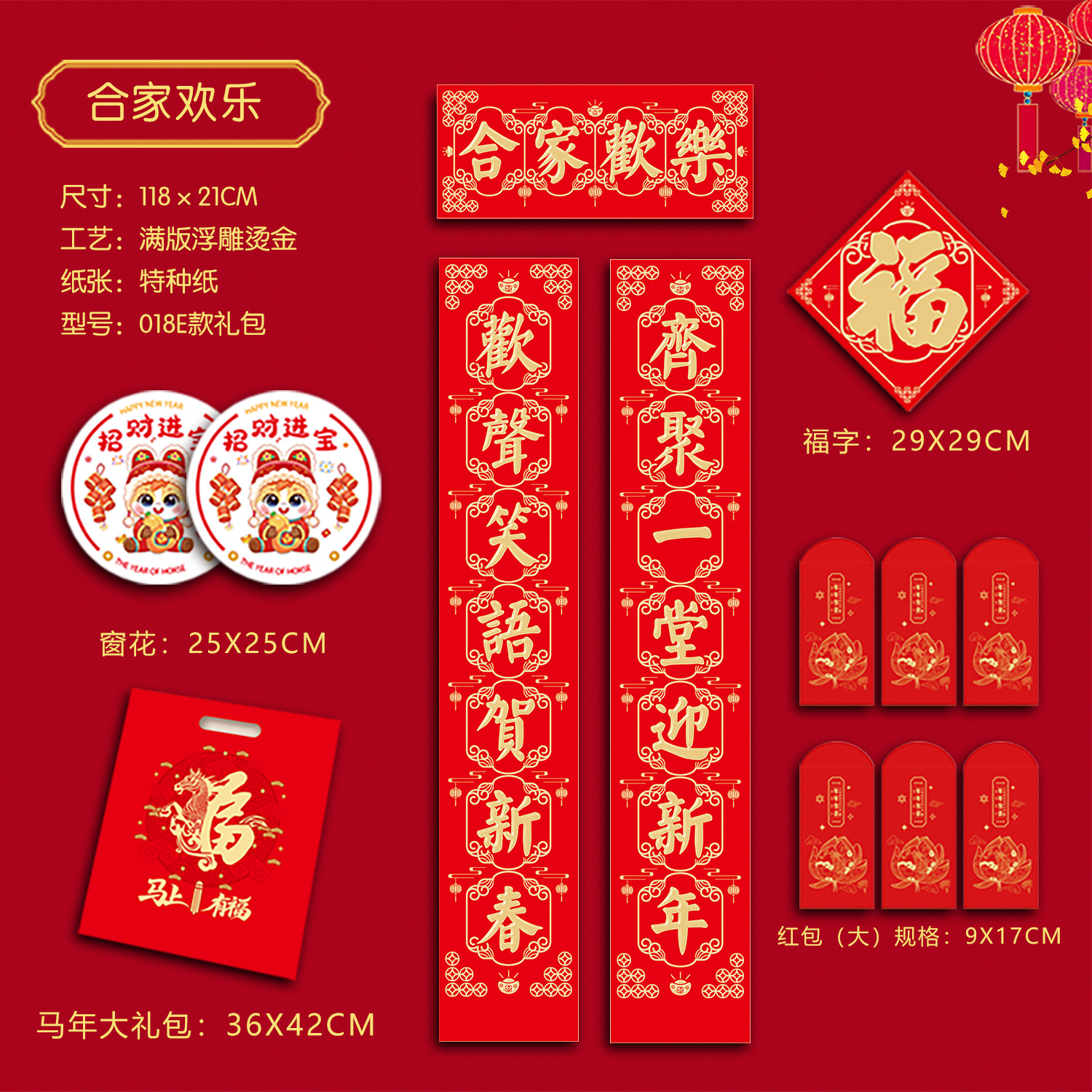 018特种纸烫金阖家欢乐118cm USD $1.29 7893 set available