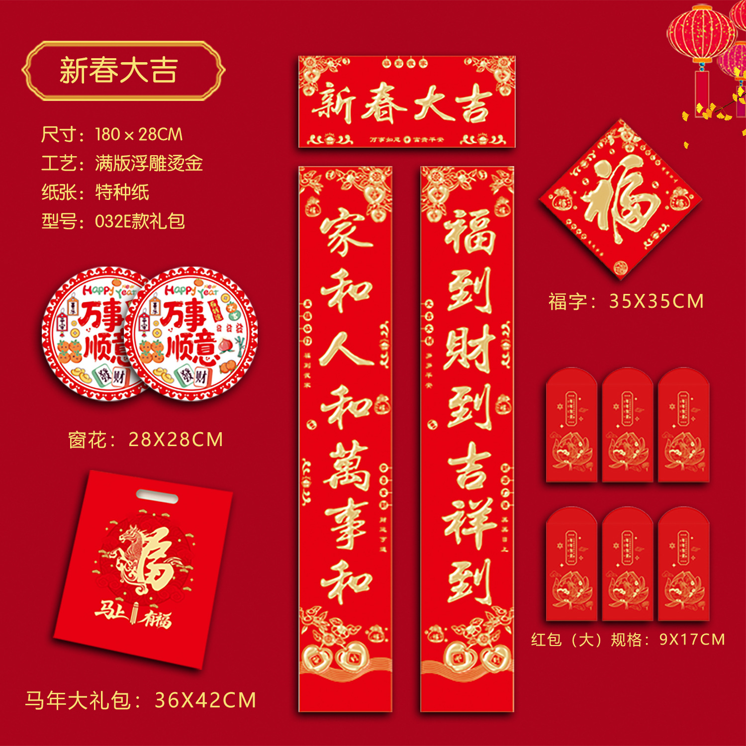 022特种纸烫金新春大吉118cm USD $1.21 2793 set available