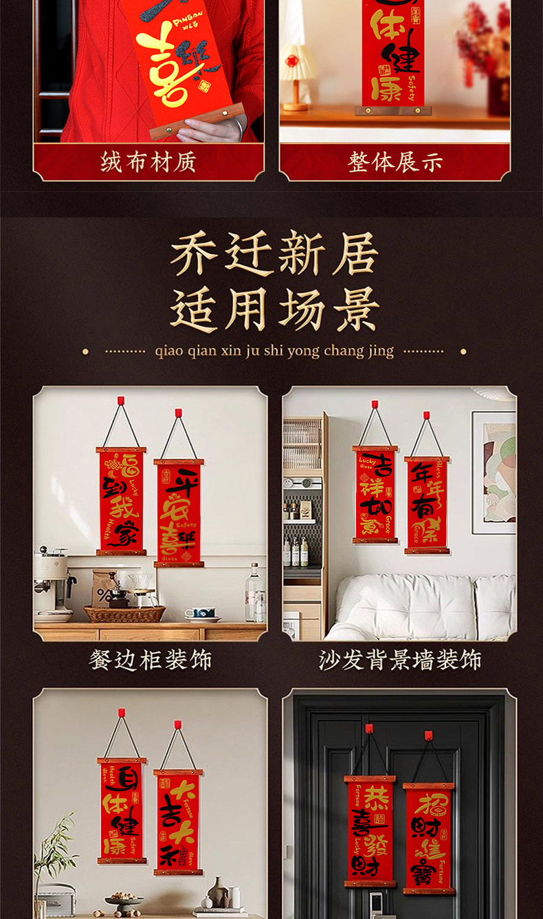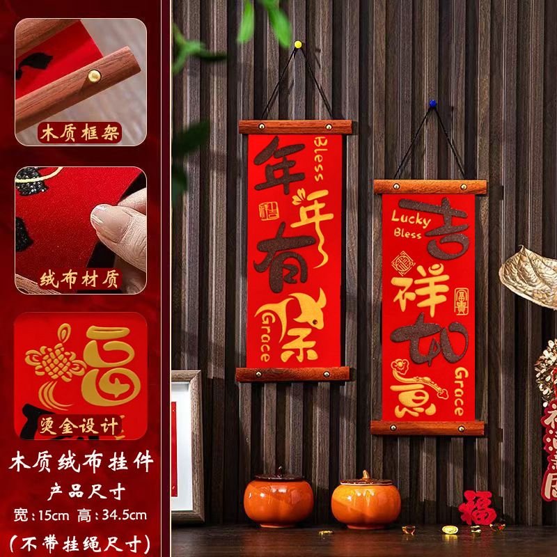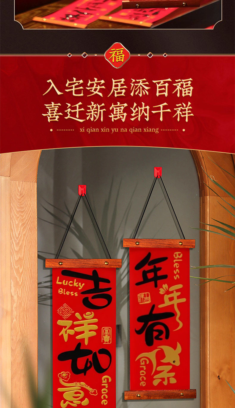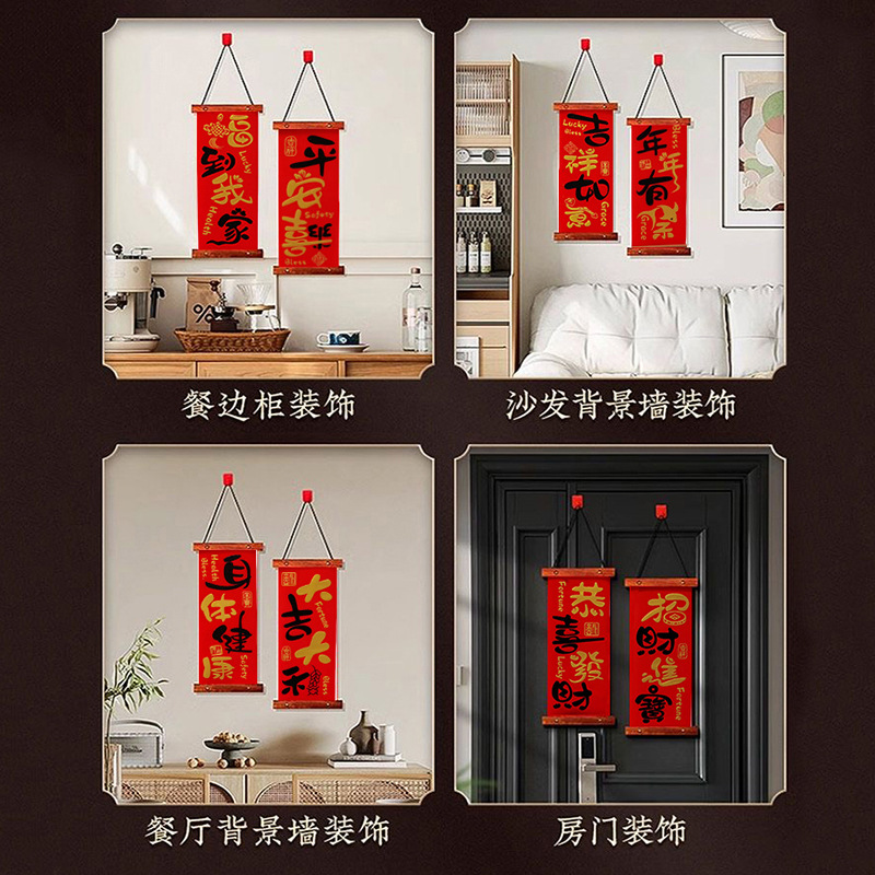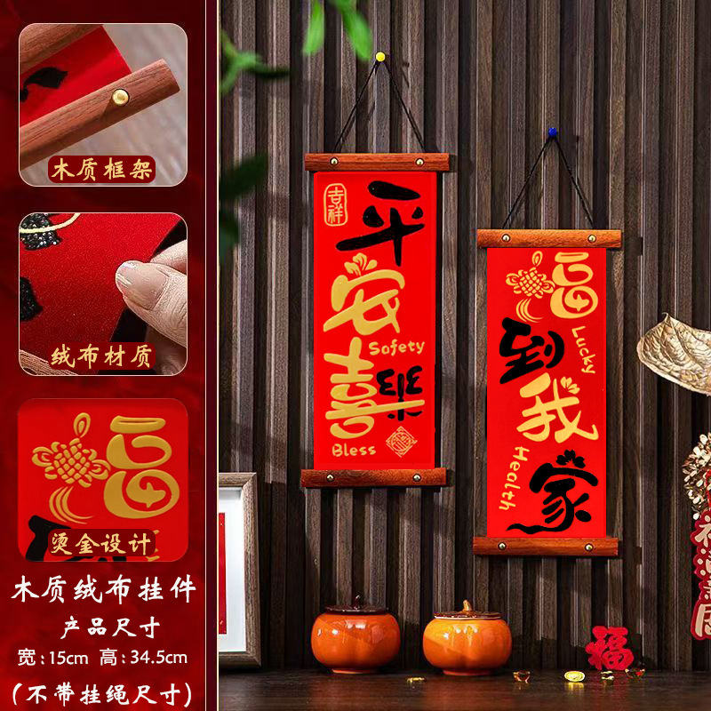 2025新款过年入户门客厅平安喜乐挂件春节高档木制四字对联挂画