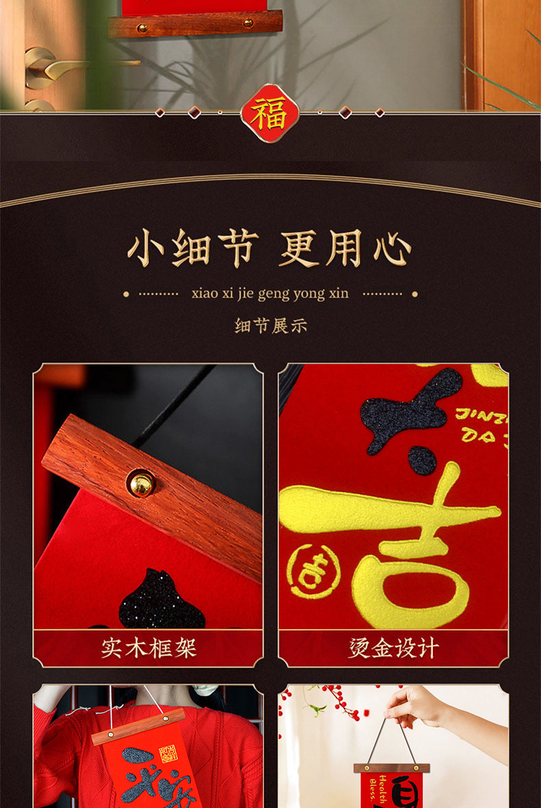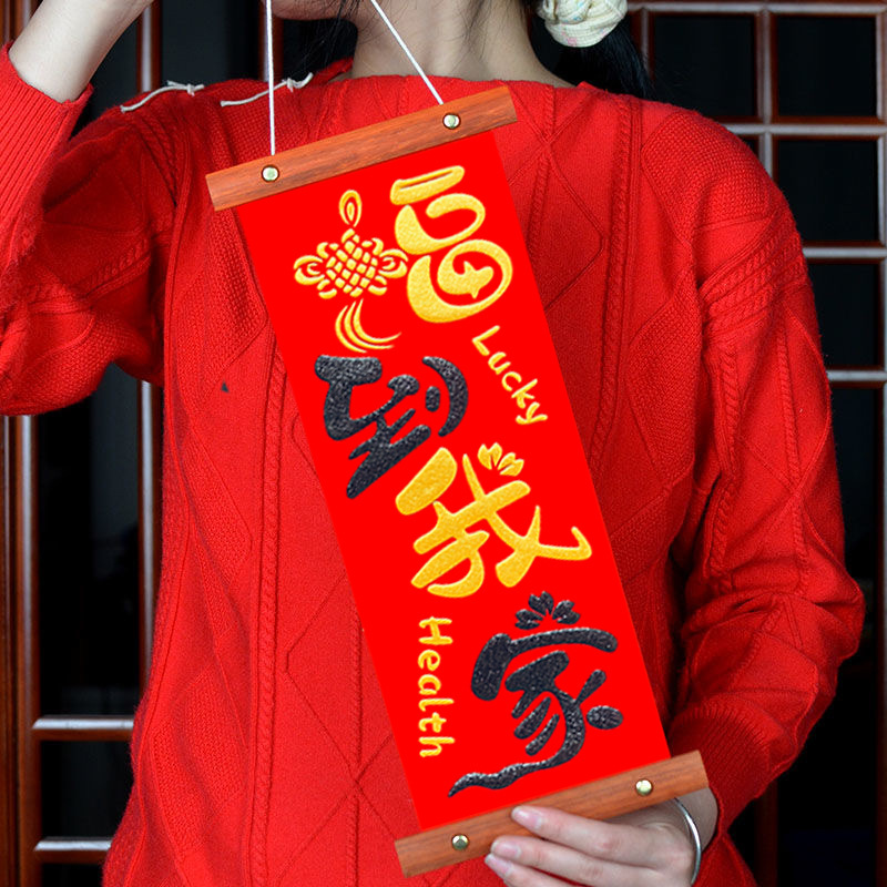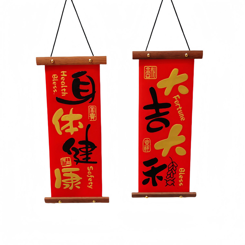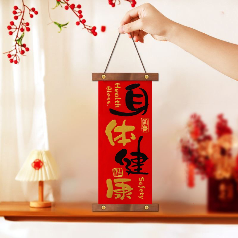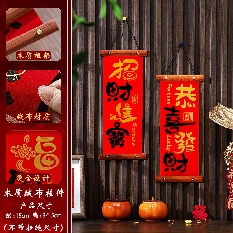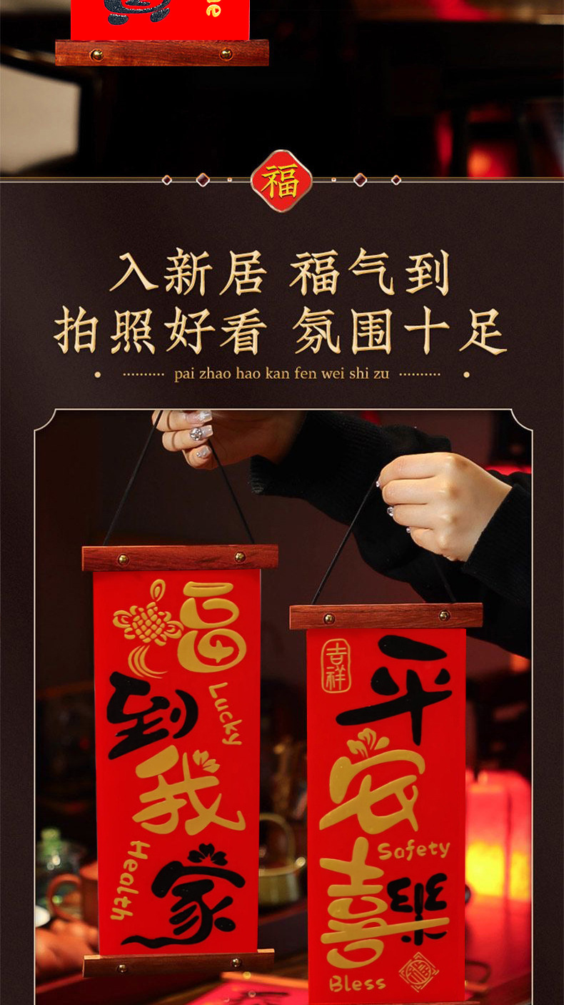 2025新款过年入户门客厅平安喜乐挂件春节高档木制四字对联挂画