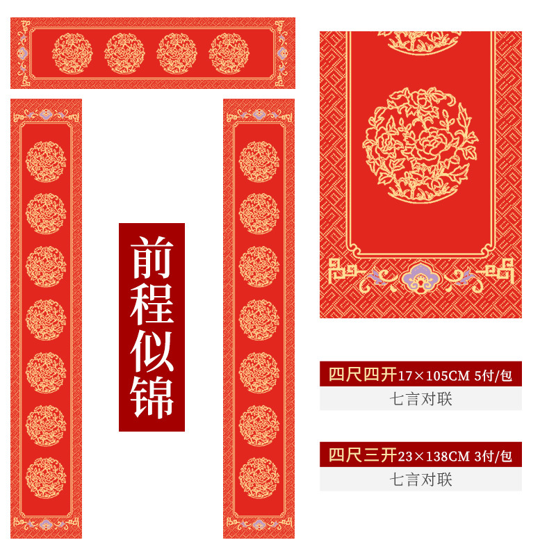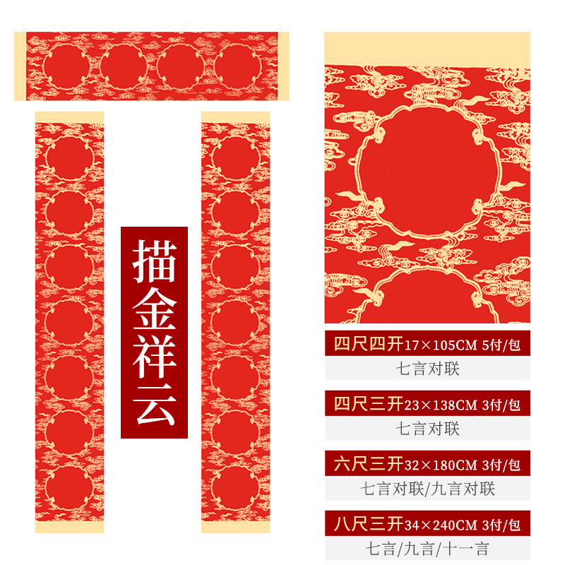 四尺四开 17*104cm 七言 五副/包 USD $0.88 36923 bag available