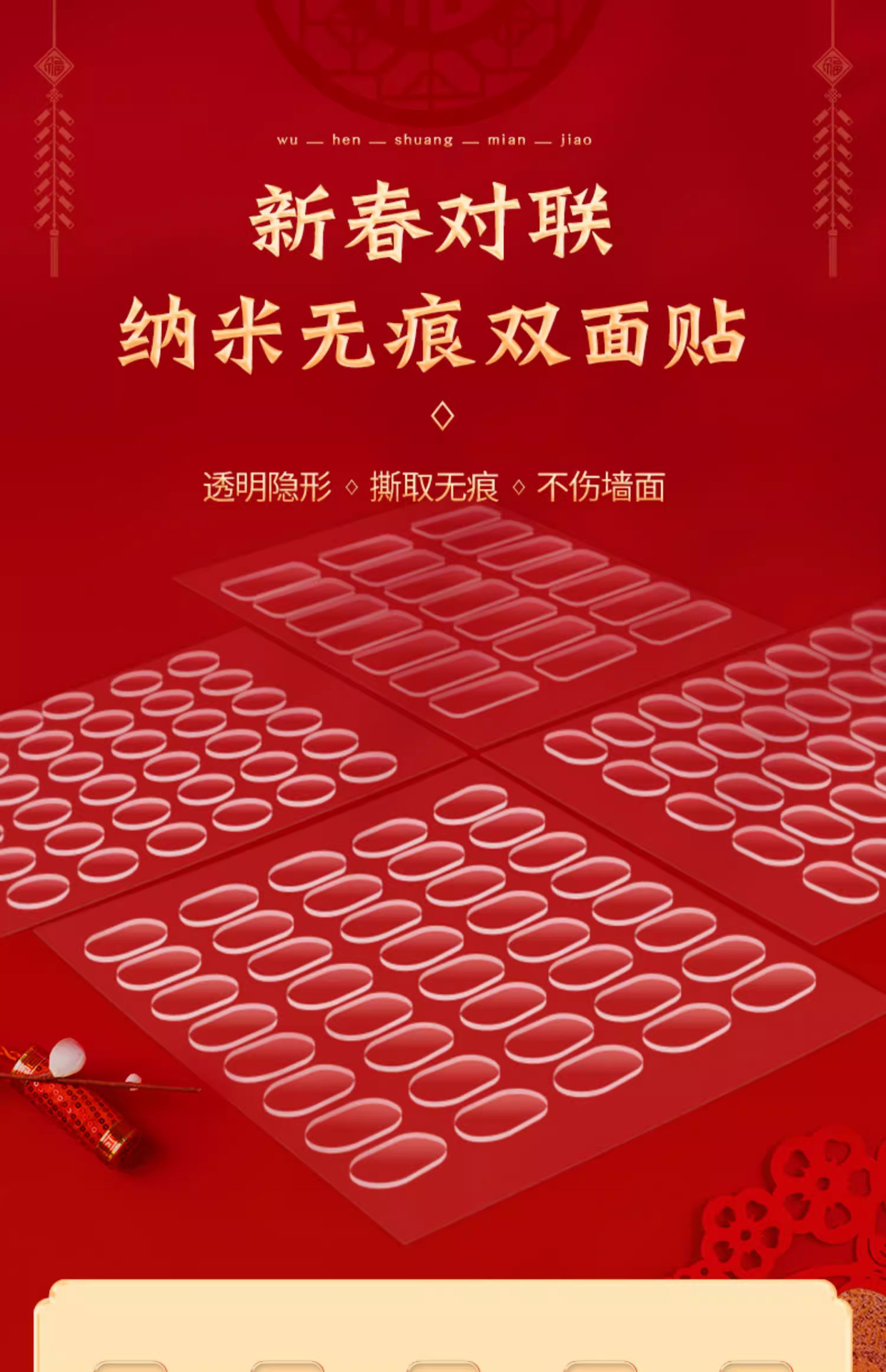 3mm春联双面胶高粘对联福字年画贴不伤墙无痕点胶新年门窗双面贴