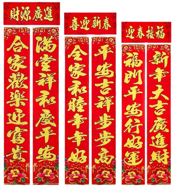 new full bronzing flocking sprinkling gold powder couplet chinese new year couplet rural gate new year couplet new year goods factory wholesale