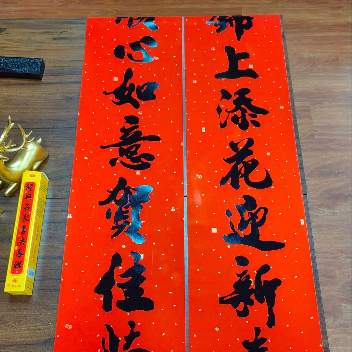 过年对联书法家用大门春联喜庆用品名家2026亮黑盒宝正文化批发