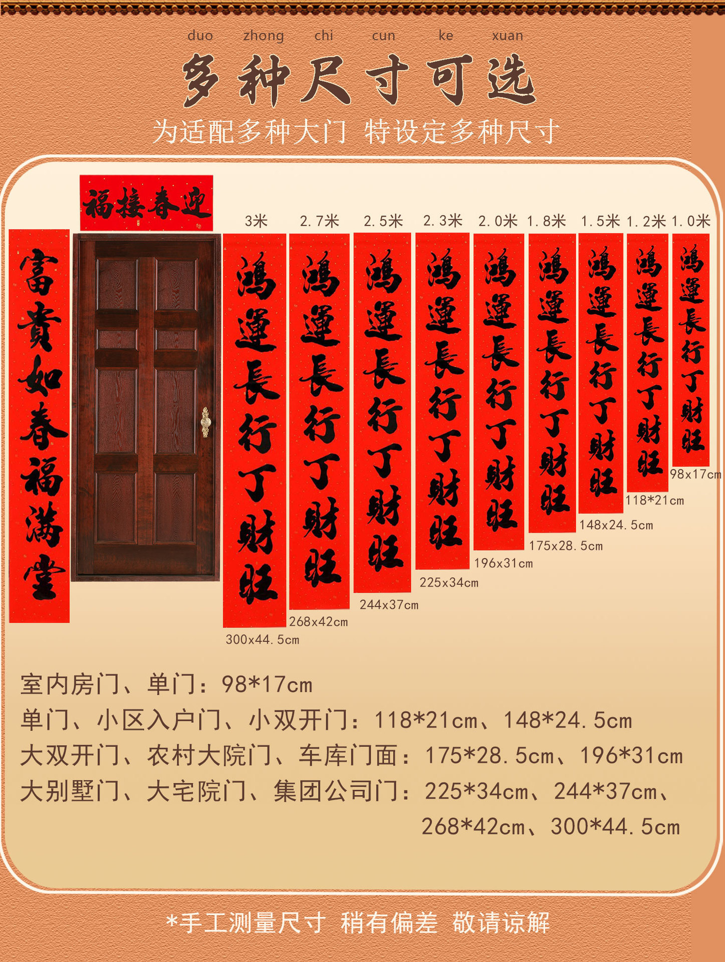 | 1.8米⑦号词 鸿运长行丁财旺 富贵如春福满堂 横批:万事如意 | USD $1.15 | 420 pair available |