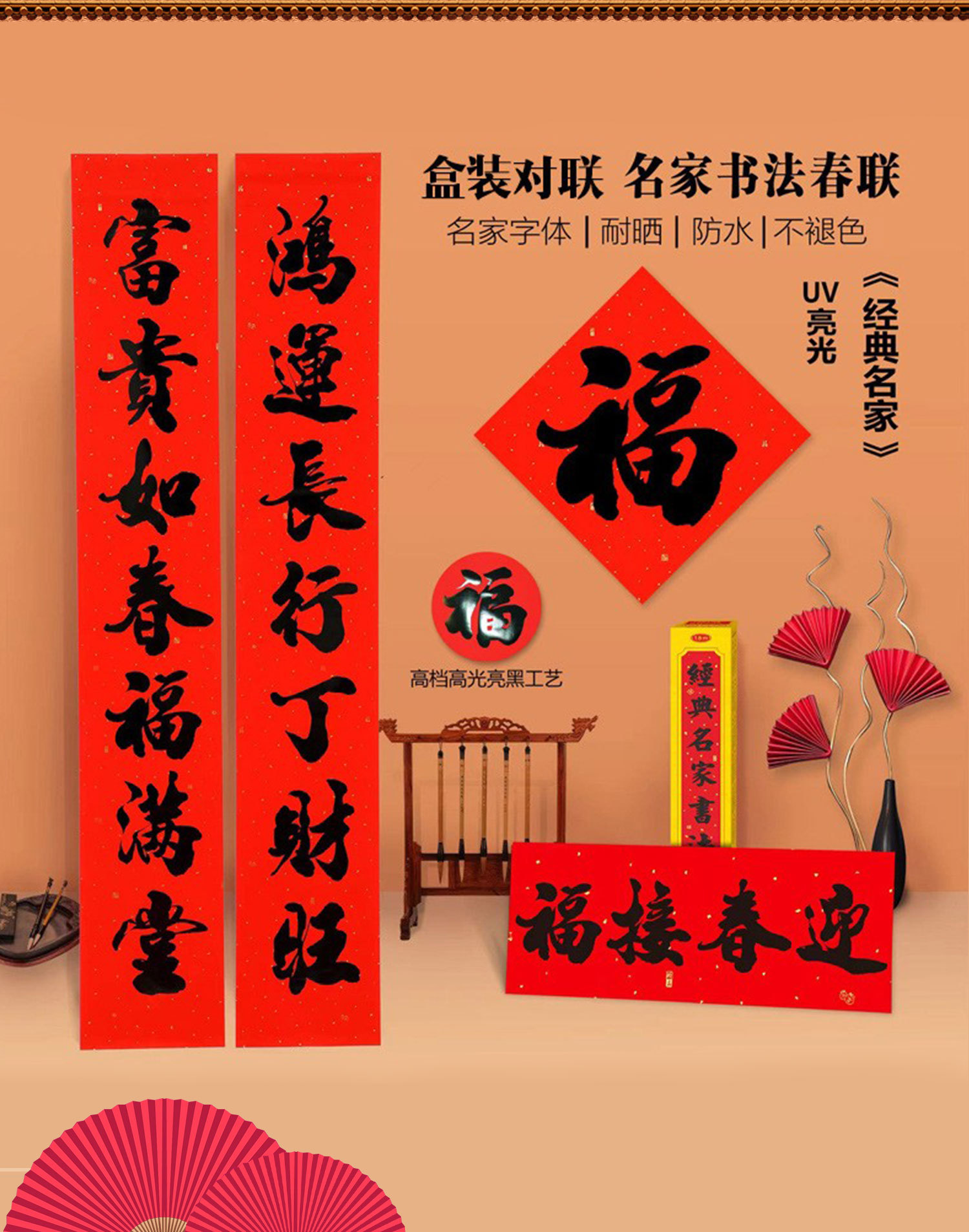 | 1.8米②号词 喜气迎祥人财旺 春风送福家业兴 横批:五福临门 | USD $1.15 | 385 pair available |