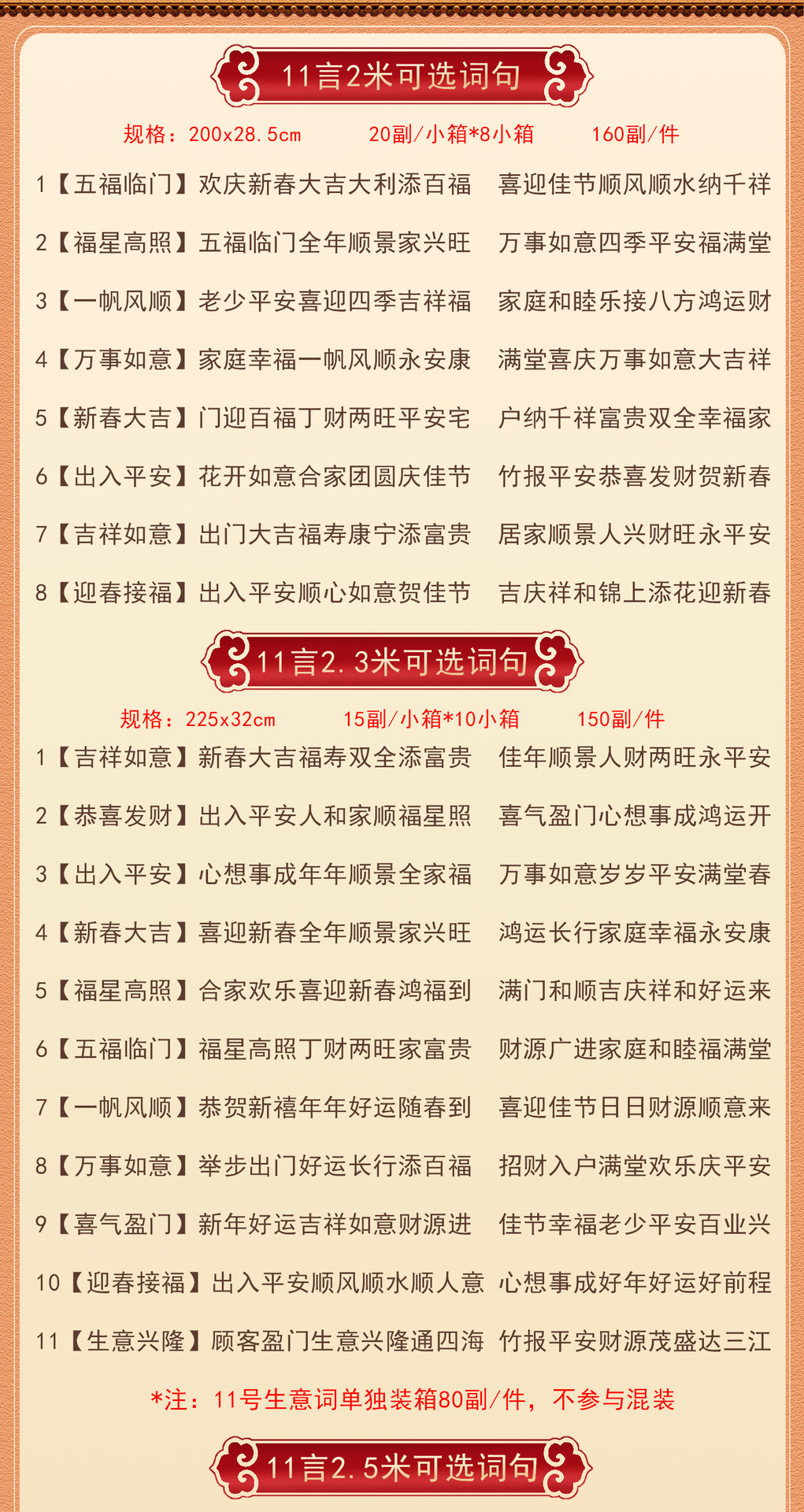 | 1.5米③号词 迎春迎喜迎富贵 接福接财接平安 横批:福星高照 | USD $0.94 | 330 pair available |