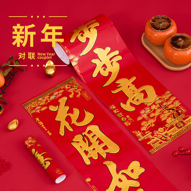 2026马年新款植绒对联新春家用春节绒布门贴入户门装饰洒金春联贴