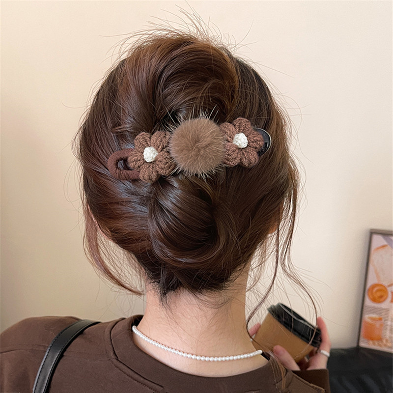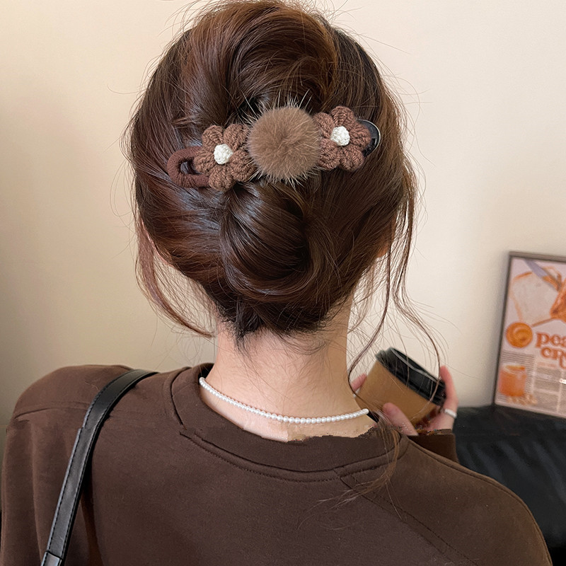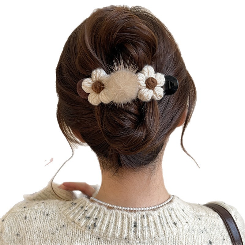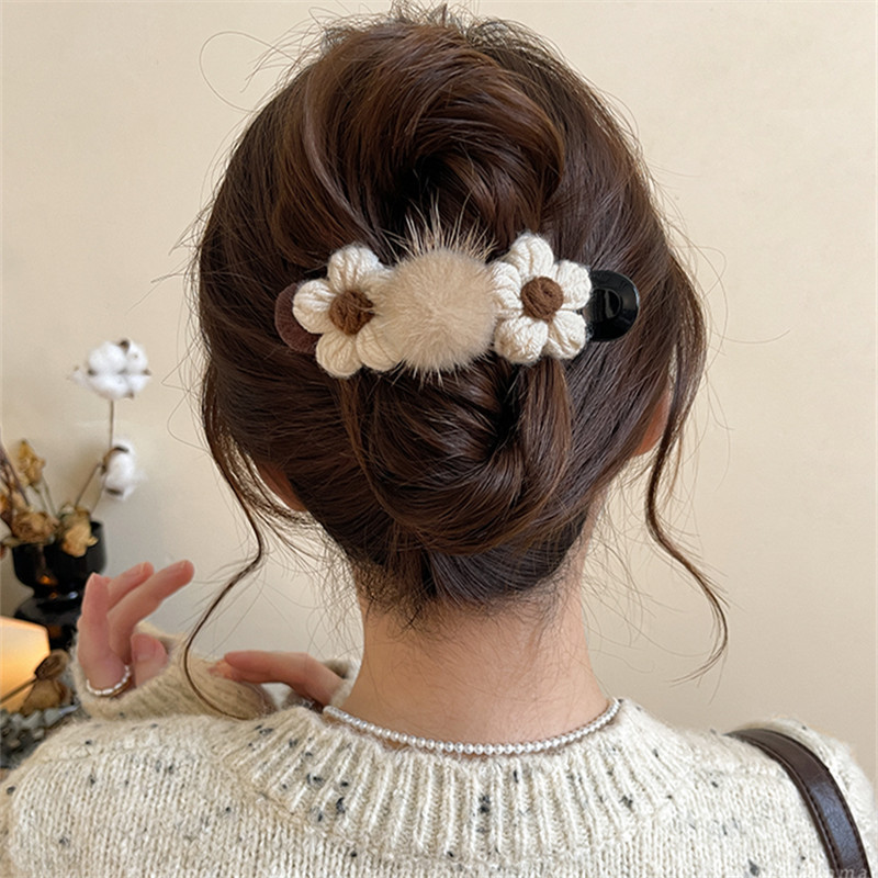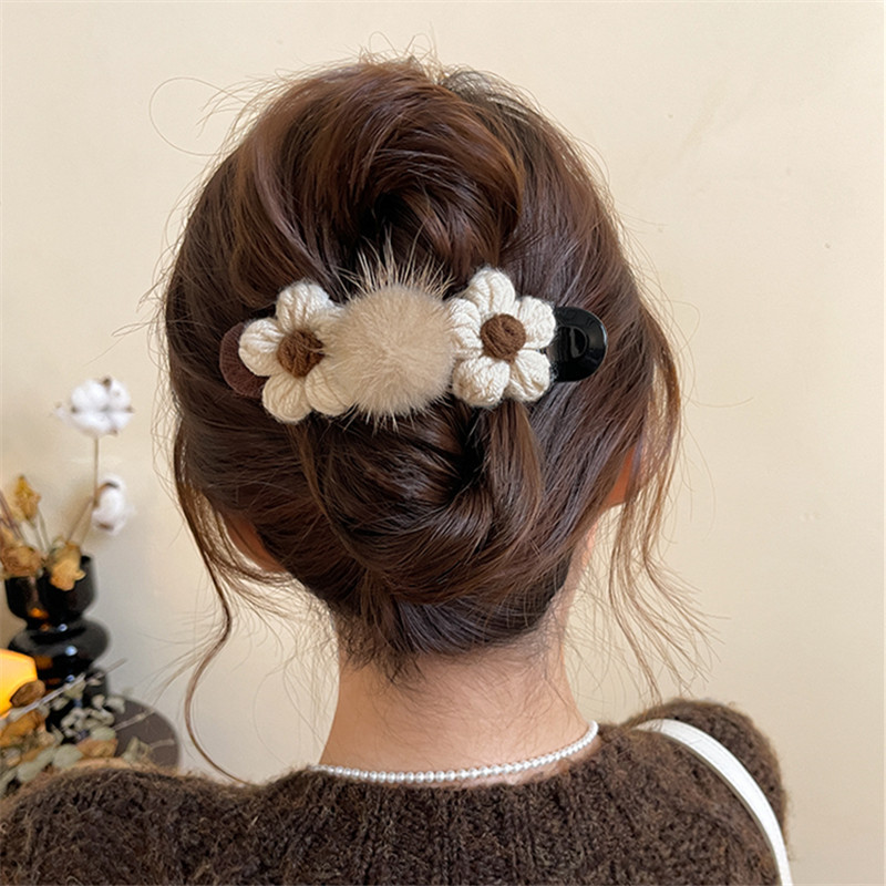 秋冬毛绒花朵鸭嘴夹女感2025新款后脑勺一字发夹时尚发卡头饰