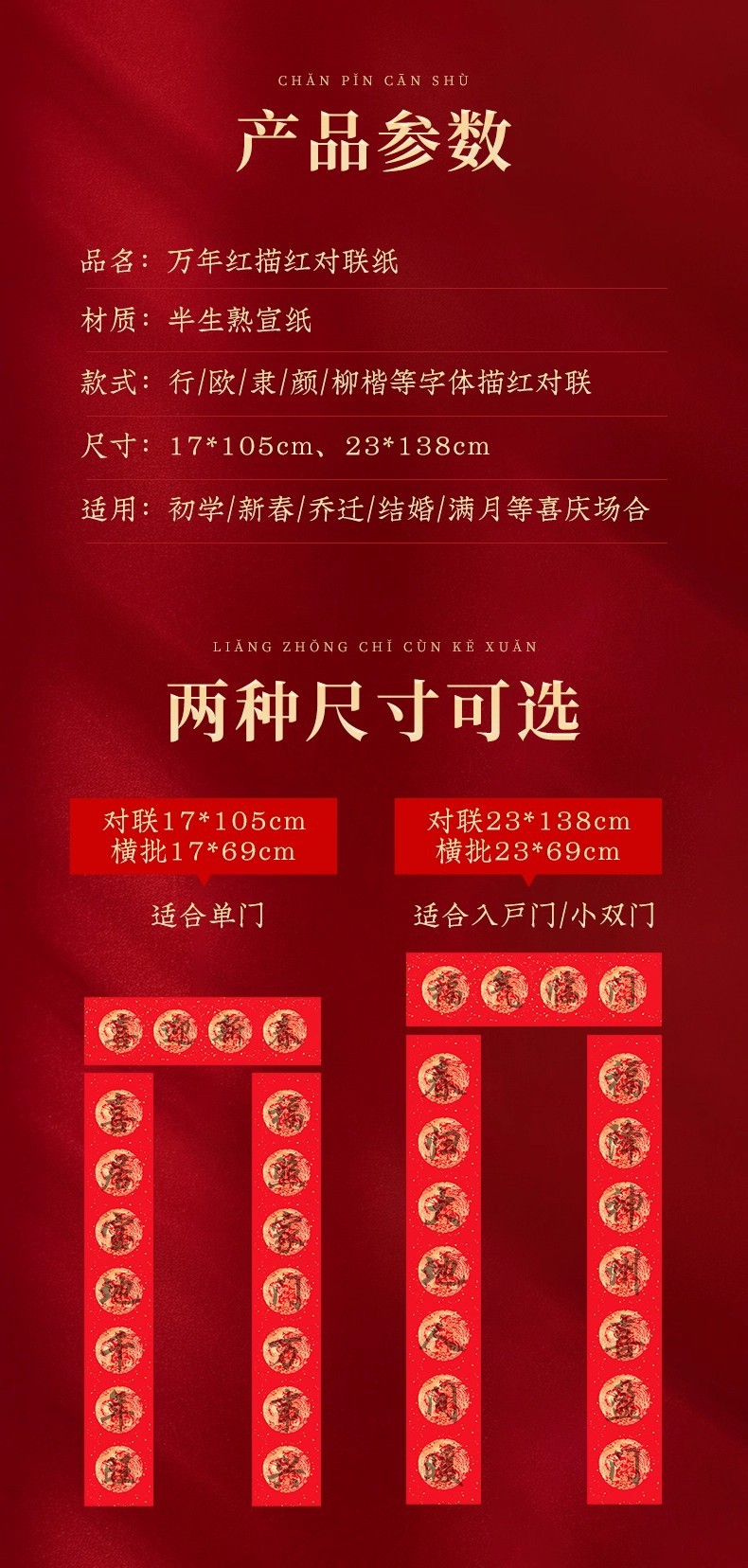 wannianhong tracing fu character doufang thickened couplet paper beginner copy spring couplet paper self-written fu paper writing brush xuan paper