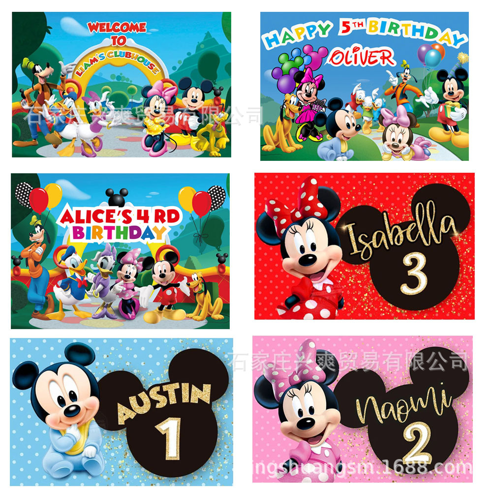 新款生日背景布儿童生日派对布置道具涤纶100D对联旗帜亚马逊希音